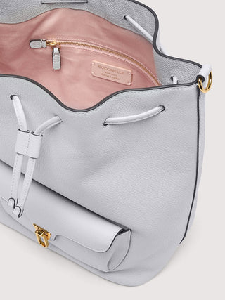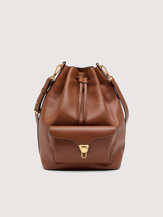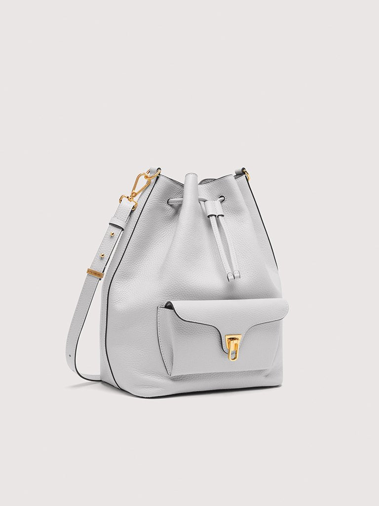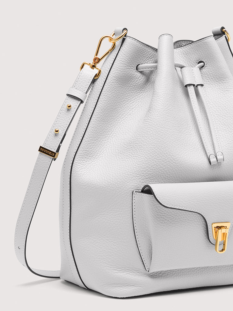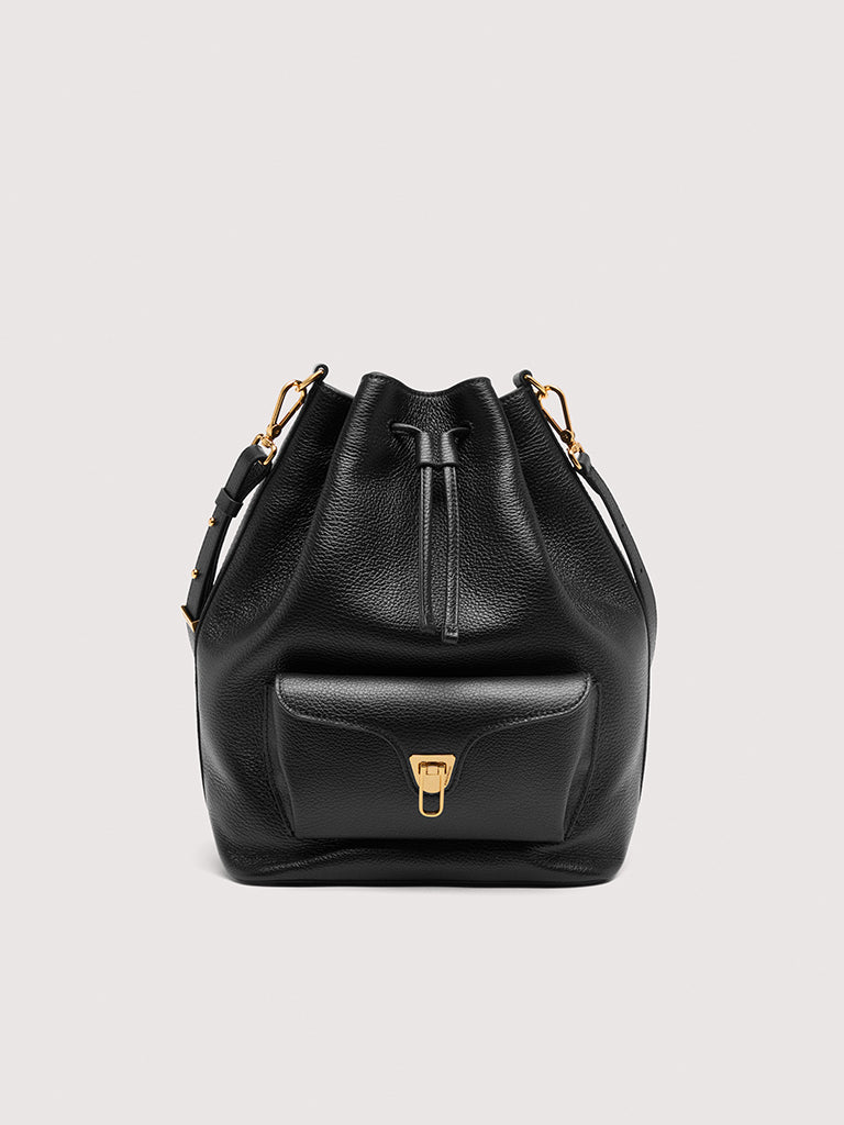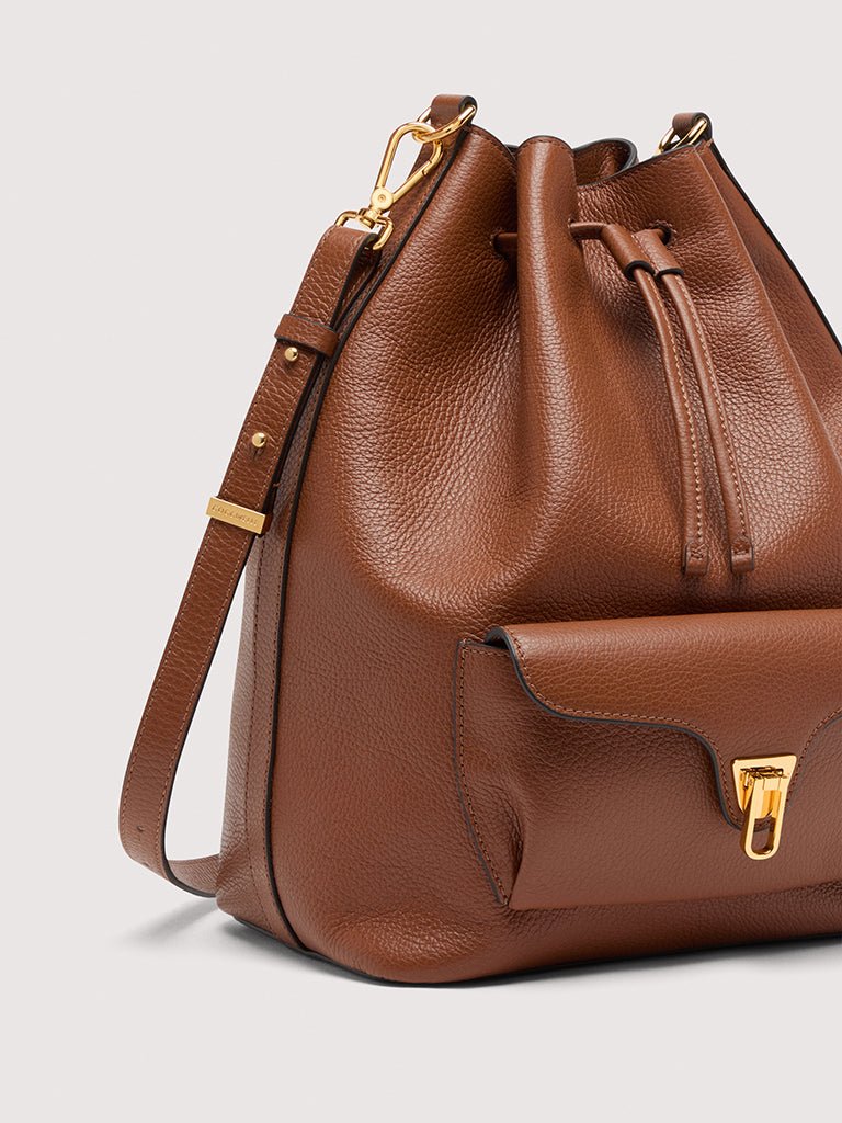 Coccinelle Beat is one of the brand’s iconic lines: the distinctive flap closure with plectrum is the symbol of Coccinelle’s identity, reimagined for this collection with elegant, modern functionality. This maxi bucket bag with leather shoulder strap can be carried in two ways, and is a perfect mix of structure and softness, practicality and contemporary design. This model is made with leather processed using specialised machines and then tumbled to maintain its softness. This is a very robust, easy to clean leather, making it ideal for everyday use.