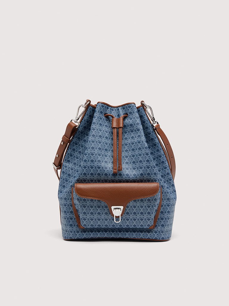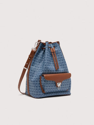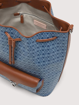 Coccinelle Beat is one of the brand’s iconic lines: the distinctive flap closure with plectrum is the symbol of Coccinelle’s identity, reimagined for this collection with elegant, modern functionality. This maxi bucket bag with leather shoulder strap can be carried in two ways, and is a perfect mix of structure and softness, practicality and contemporary design. This model is made from polyester fabric, on which a special finish has been applied. The fabric is then passed through a specific cylinder engraved with our monogram pattern.