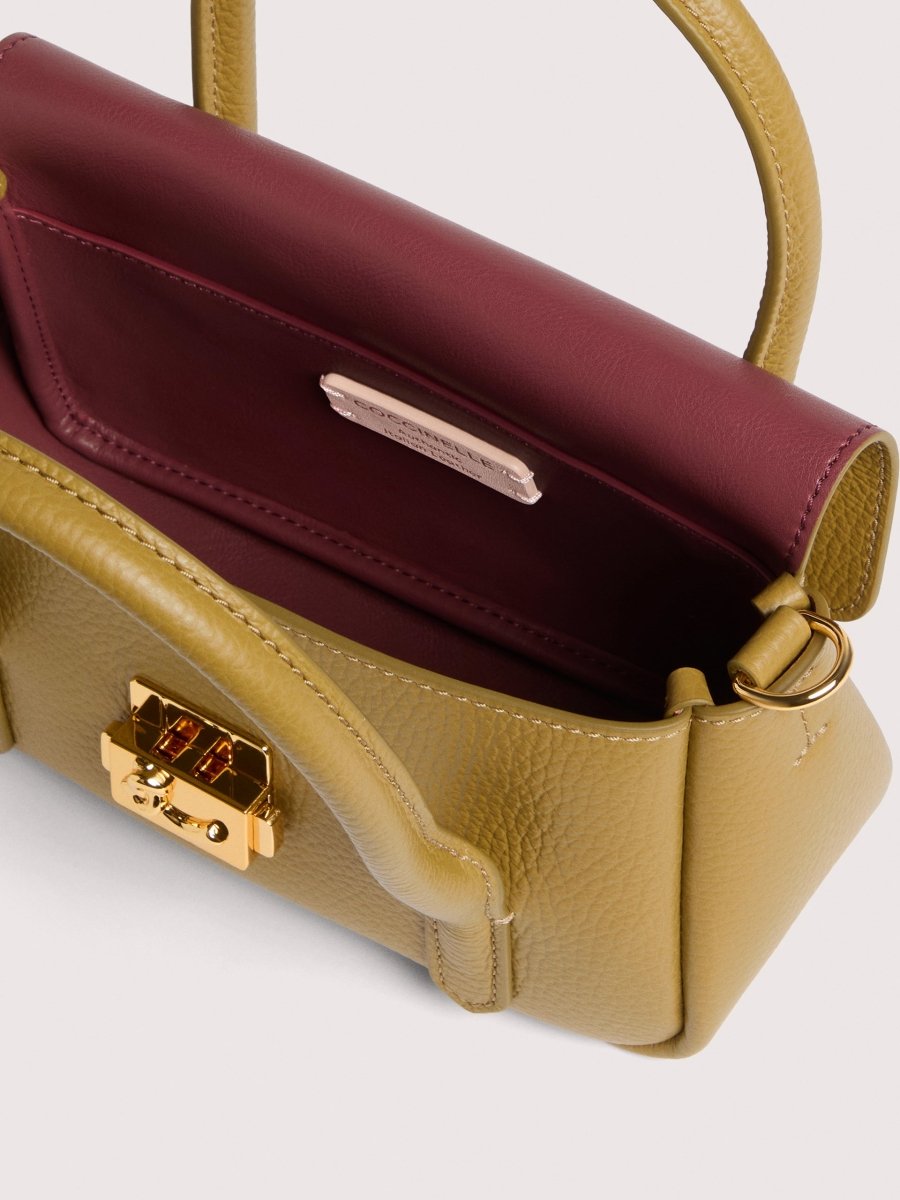 The Coccinelle C-Me Lock line is a sophisticated evolution of the C-Me logo, reimagined as a modern, distinctive closure that underscores its contemporary character. C-Me Lock stands out with a bold yet practical design, ideal for everyday life with a touch of style. This model is made with leather processed using specialised machines and then tumbled to maintain its softness. This is a very robust, easy to clean leather, making it ideal for everyday use.
