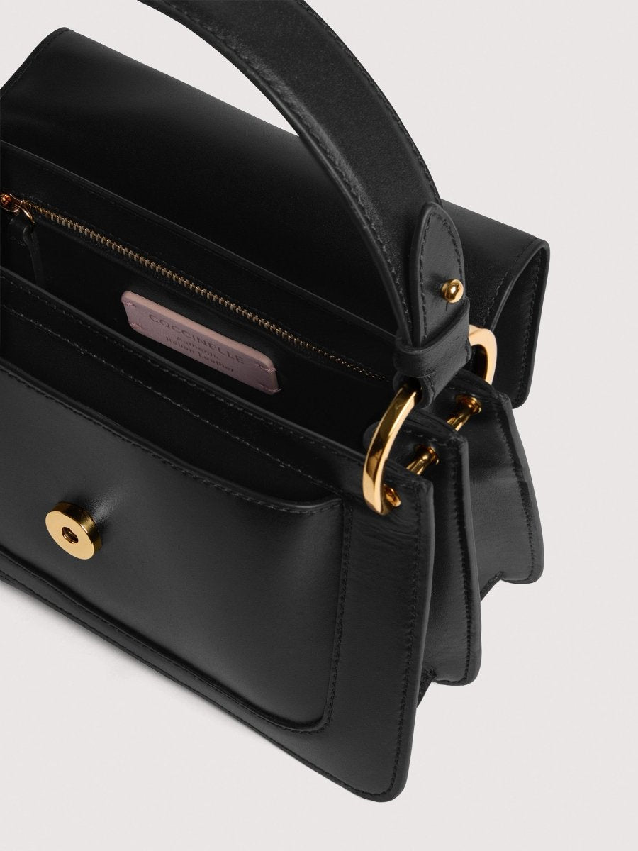 A new signature joins the brand: Coccinelle C-Me. The logo is reimagined with the C from Coccinelle, which knots around and embraces the plectrum - an iconic element of the brand - symbolising the intertwining of a woman’s life between past and present. The geometric lines and elegant curves elevate the design, while the gusseted construction brings a blend of functionality and understated elegance to this bag, intended to be the essential companion for the Coccinelle woman throughout her day. This model is made with smooth leather, tanned with special oils to give it a durable and refined appearance.
