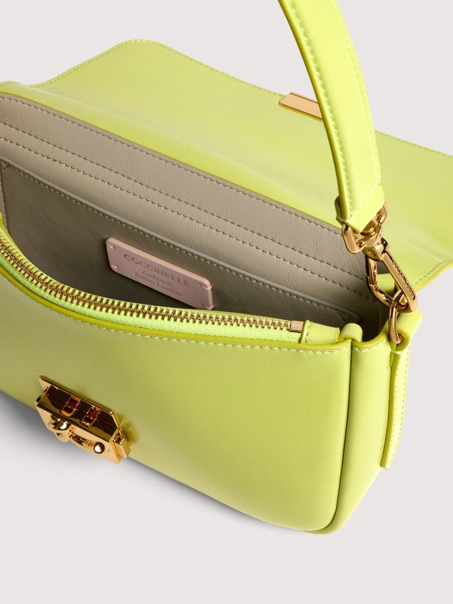The Coccinelle C-Me Lock line is a sophisticated evolution of the C-Me logo, reimagined as a modern, distinctive closure that underscores its contemporary character. C-Me Lock stands out with a bold yet practical design, ideal for everyday life with a touch of style. This model is made from smooth, soft leather. Once the leathers have been dyed in the chosen colour, the surface is coated with a transparent finish that gives the leather a glass-like effect.