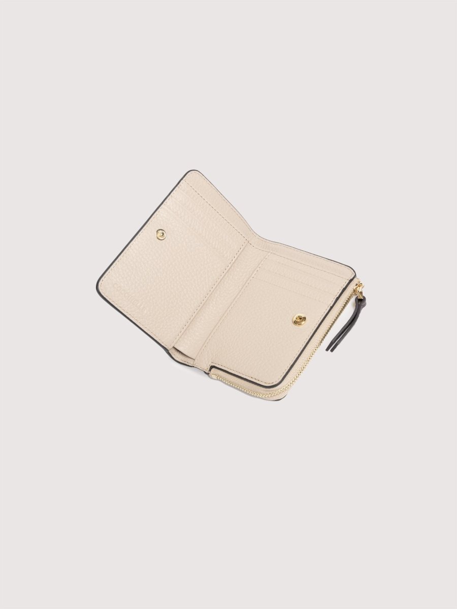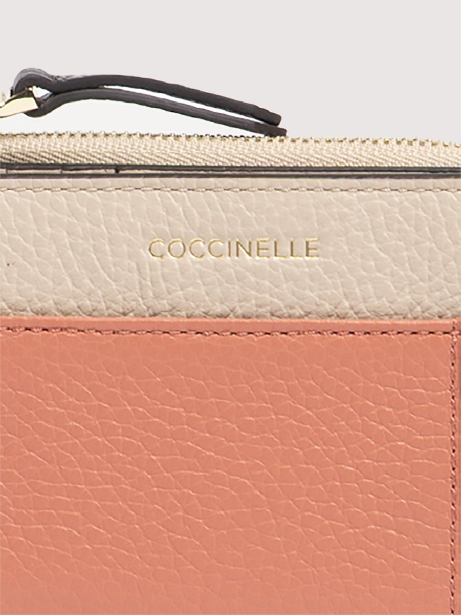 This wallet with a side zip for a coin compartment from the Coccinelle Loreen line is elevated by a tricolour design and the Coccinelle logo. Its space is well organised for storing your essentials neatly and carefully. This model is made with leather processed using specialised machines and then tumbled to maintain its softness. This is a very robust, easy to clean leather, making it ideal for everyday use. RFID protection.