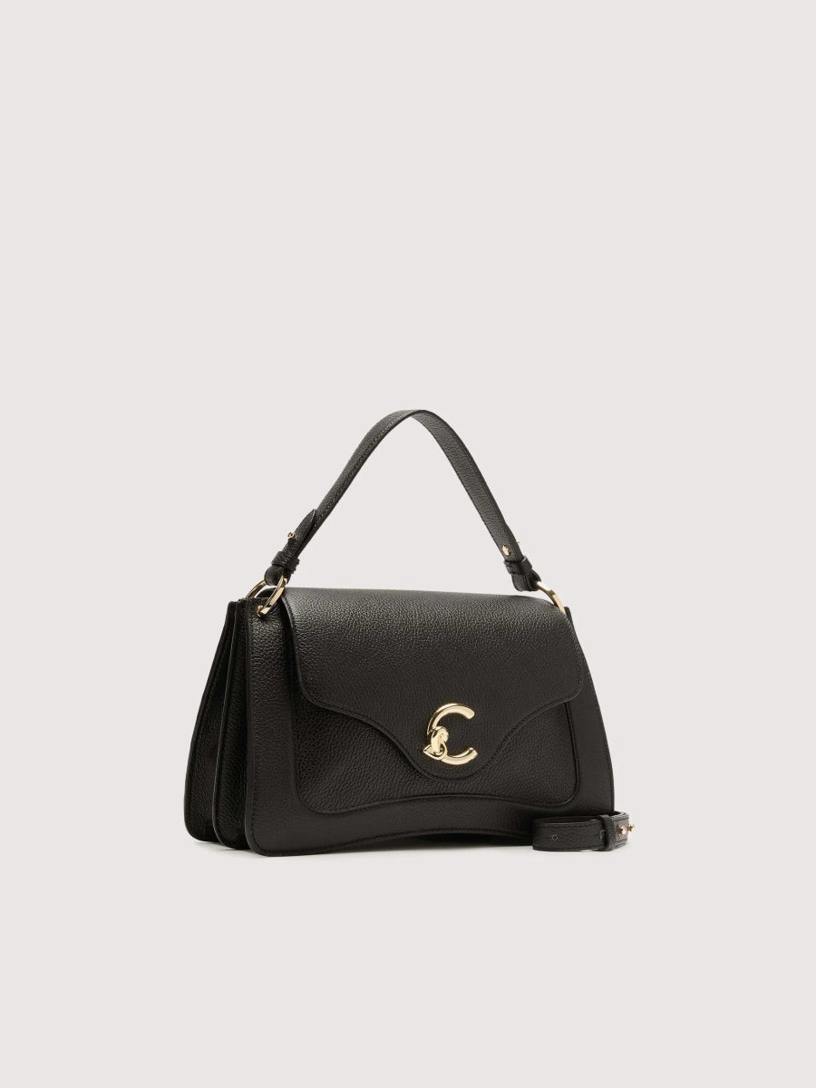 A new signature joins the brand: Coccinelle C-Me. The logo is reimagined with the C from Coccinelle, which knots around and embraces the plectrum - an iconic element of the brand - symbolising the intertwining of a woman’s life between past and present. The geometric lines and elegant curves elevate the design, while the gusseted construction brings a blend of functionality and understated elegance to this bag, intended to be the essential companion for the Coccinelle woman throughout her day. This model is made with leather processed using specialised machines and then tumbled to maintain its softness. This is a very robust, easy to clean leather, making it ideal for everyday use.
