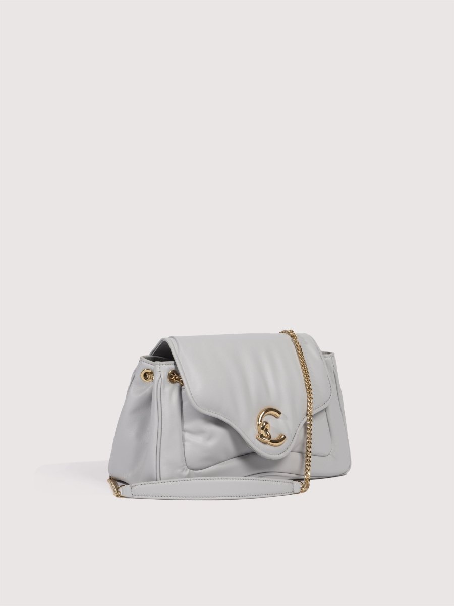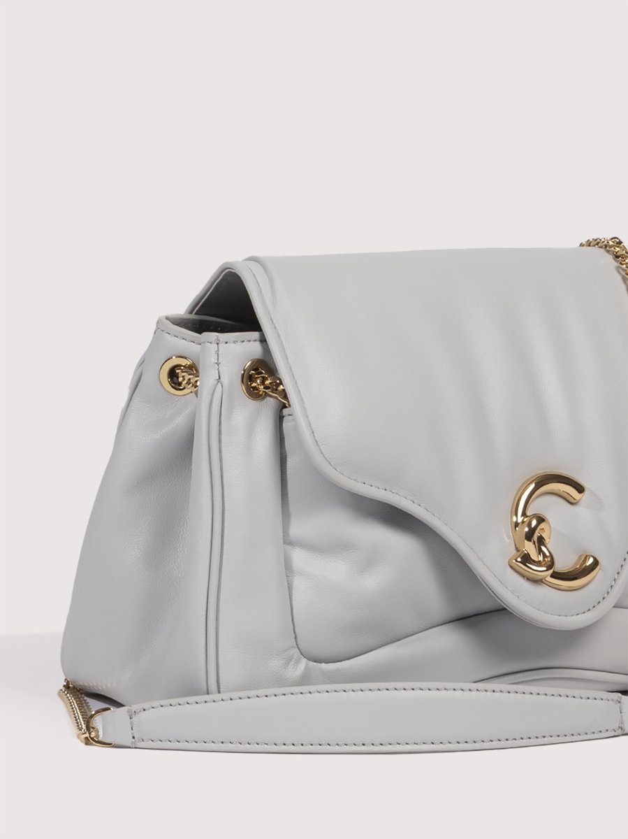 Coccinelle C-Me is now available in a new version made from soft, slightly padded smooth leather. This bag is perfect for accompanying the Coccinelle woman on special occasions, thanks to its soft construction and chain shoulder strap. This model is made with smooth leather, tanned with special oils that make it soft to the touch. Despite its silky appearance, the leather is weather-resistant thanks to the use of resins that make the leather slightly waterproof while maintaining its natural appearance.