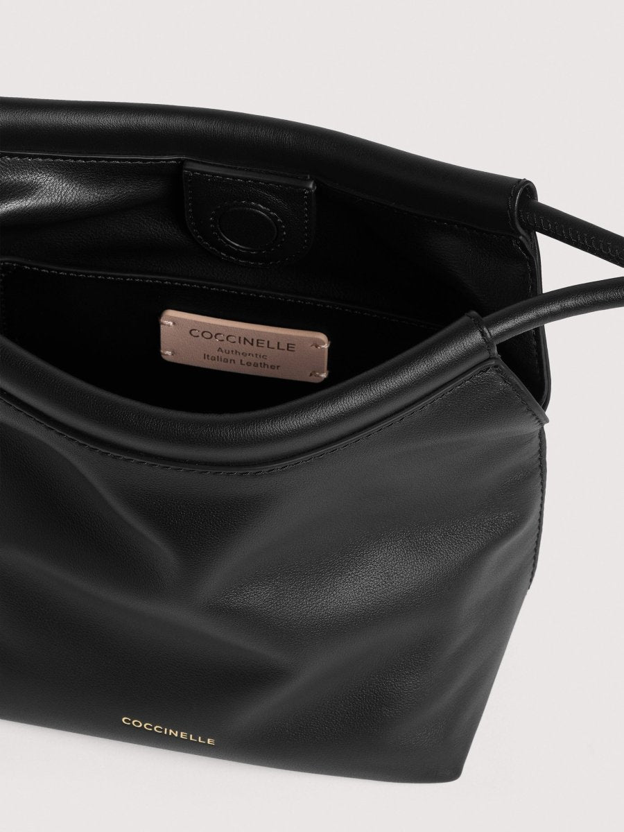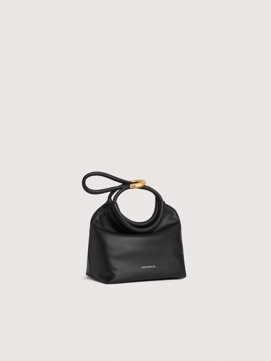 Coccinelle Finn Pouch is the perfect bag for special occasions, while also adding a sophisticated touch to everyday looks. This modern minibag combines elegance with practicality; designed to be worn comfortably on the wrist like a bracelet, it leaves the hands free. The main feature is the tubular leather detail that slips through the circular metal element, closing the bag with the aid of a practical magnet. This model is made with smooth leather, tanned with special oils that make it soft to the touch. Despite its silky appearance, the leather is weather-resistant thanks to the use of resins that make the leather slightly waterproof while maintaining its natural appearance.