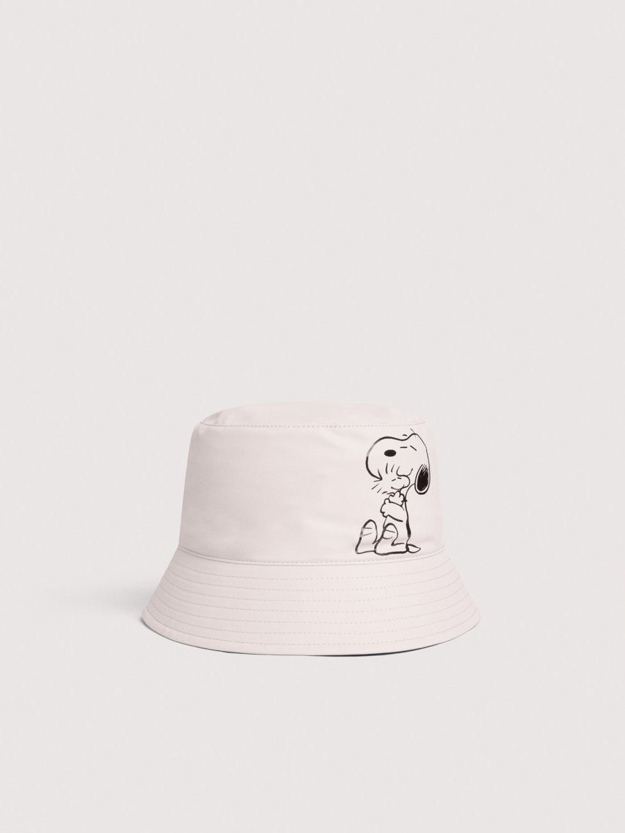 Coccinelle celebrates its special partnership with Peanuts to mark the 75th anniversary of the world’s most iconic and beloved comic strip. A fusion of two creative worlds has given rise to an exclusive accessories collection that combines the sophistication of Italian design with the playful spirit of Peanuts’ timeless characters. This fisherman’s hat completes this special collection by adding a touch of originality and playfulness to any outfit. Lightweight, versatile and minimalist in design. This accessory can be easily folded thanks to the strap and press stud closure, making it ideal for taking with you wherever you go. This model is made from coated fabric, consisting of a woven base using recycled polyester yarn, finished on the outside with a coloured polyurethane coating that makes it waterproof and durable. Recycled polyester gives a second life to non-biodegradable materials. In terms of quality, it is comparable to virgin polyester, but its production requires 59% less energy.