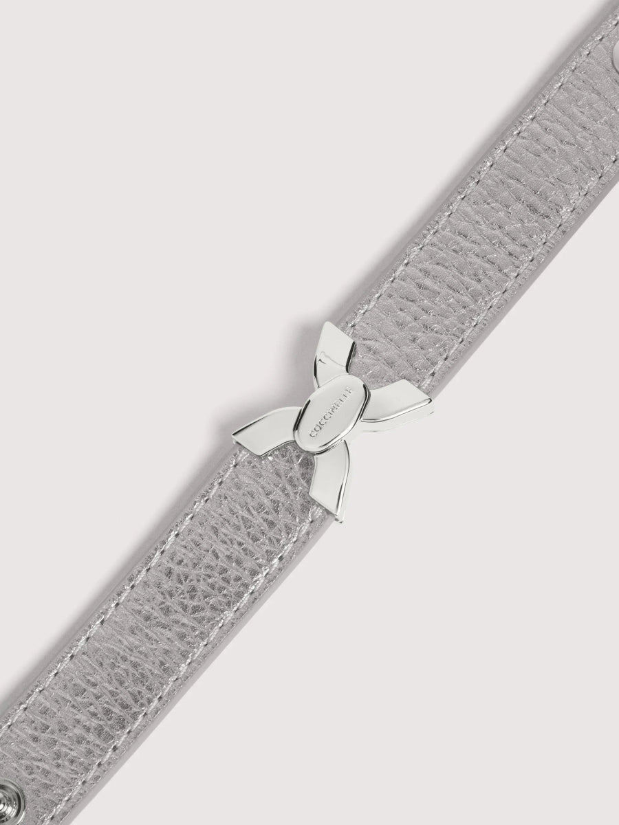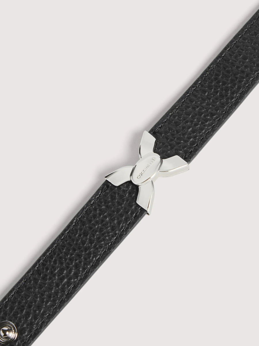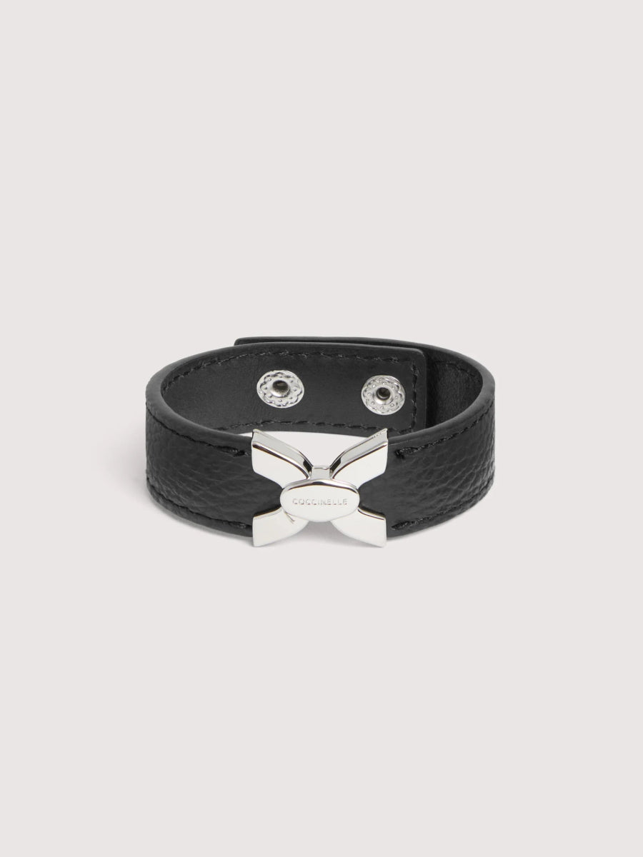 This bracelet from the Coccinelle Klara line features a sophisticated double plectrum detail, a now-recognisable symbol of the brand. An essential accessory that adds a unique touch to any look. This model is made with leather processed using specialised machines and then tumbled to maintain its softness. This is a very robust, easy to clean leather, making it ideal for everyday use.