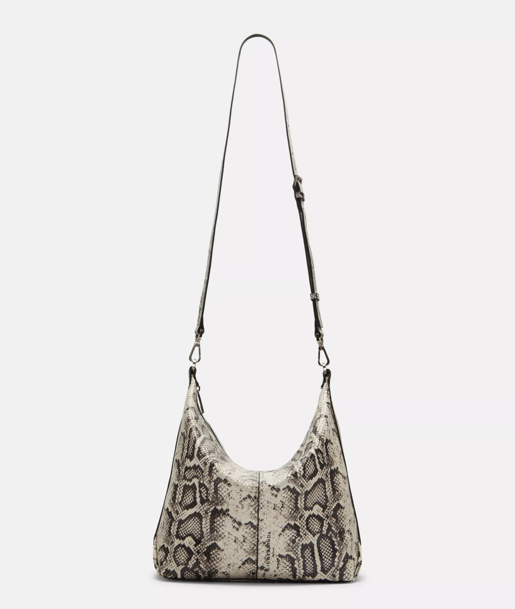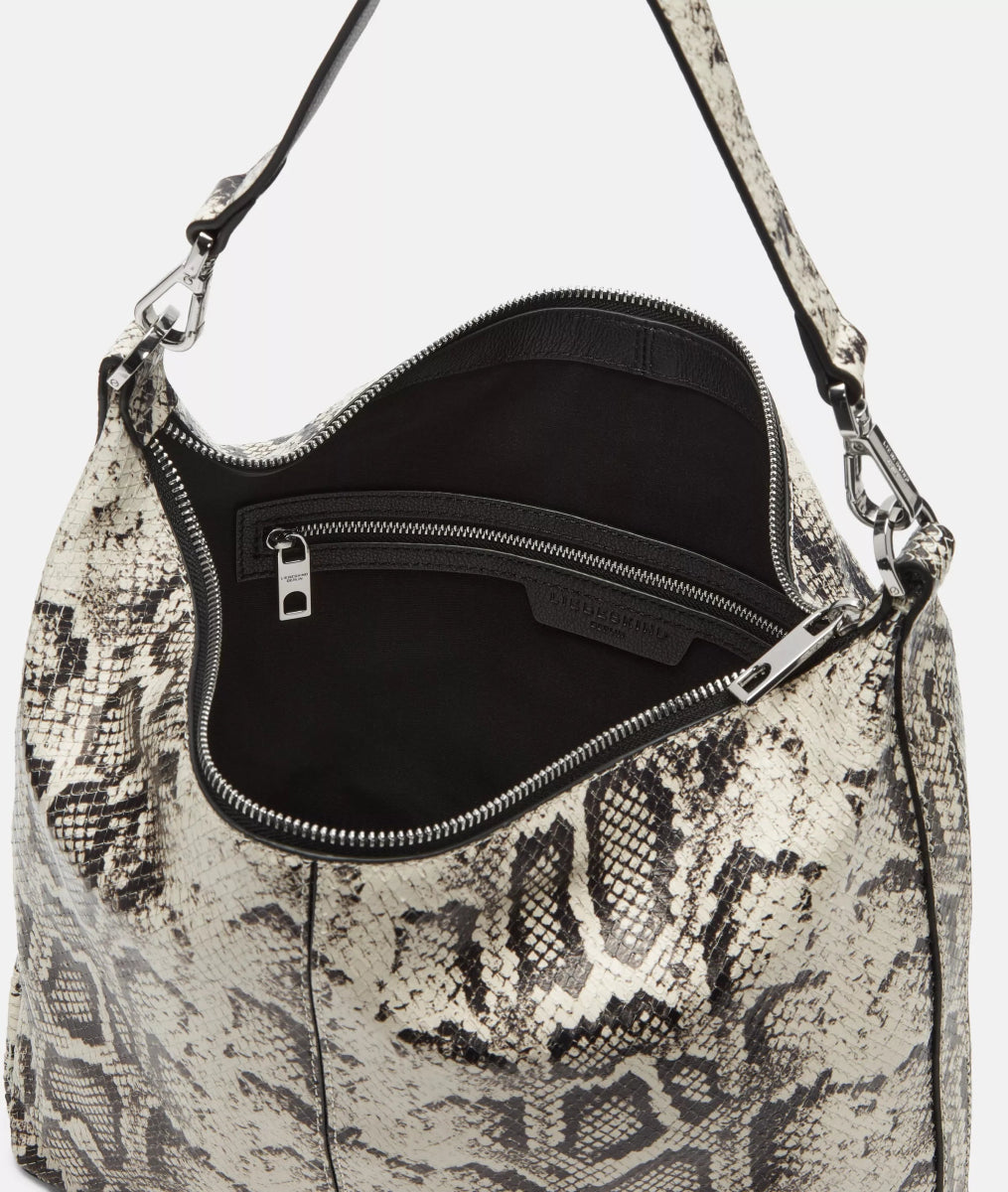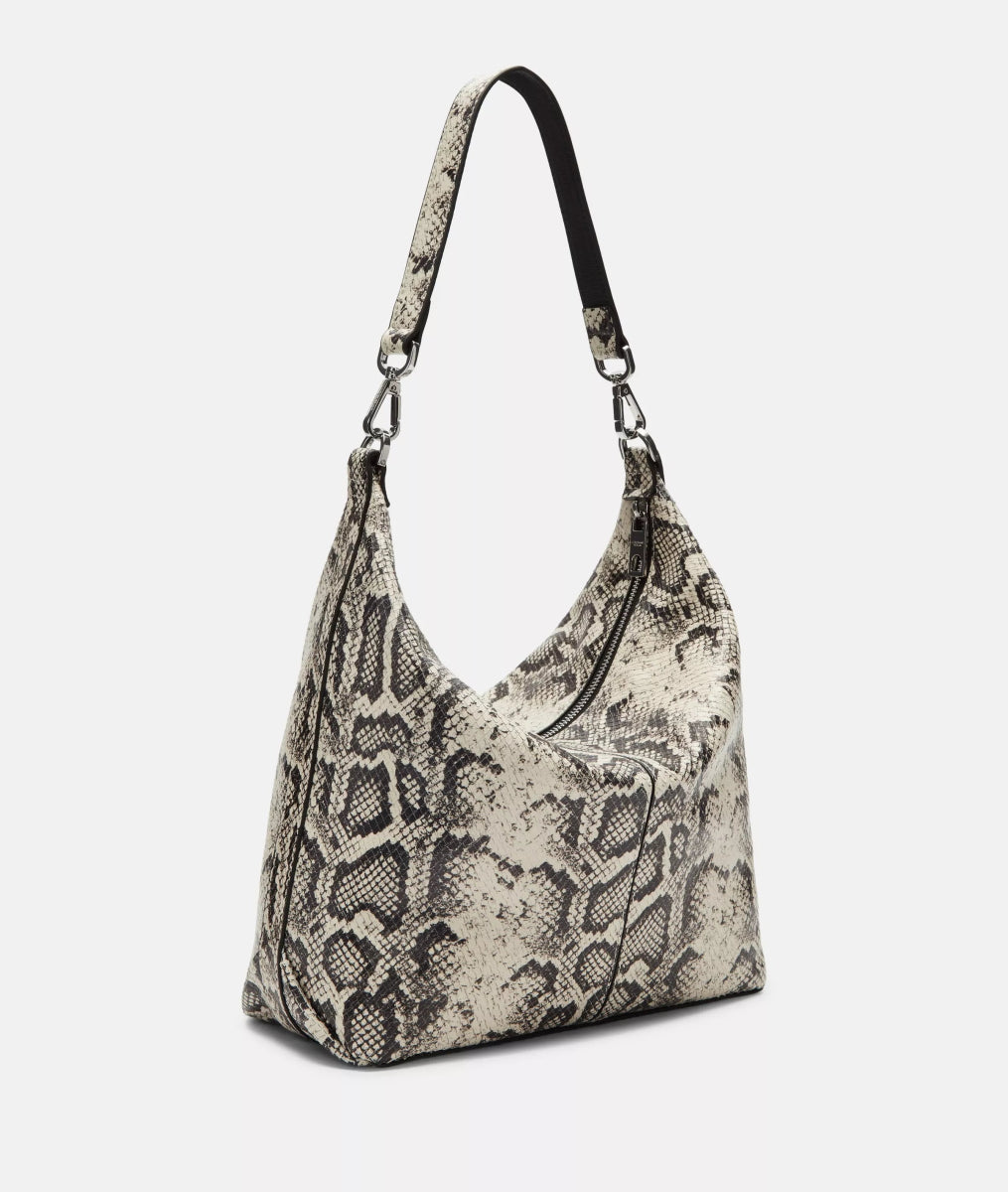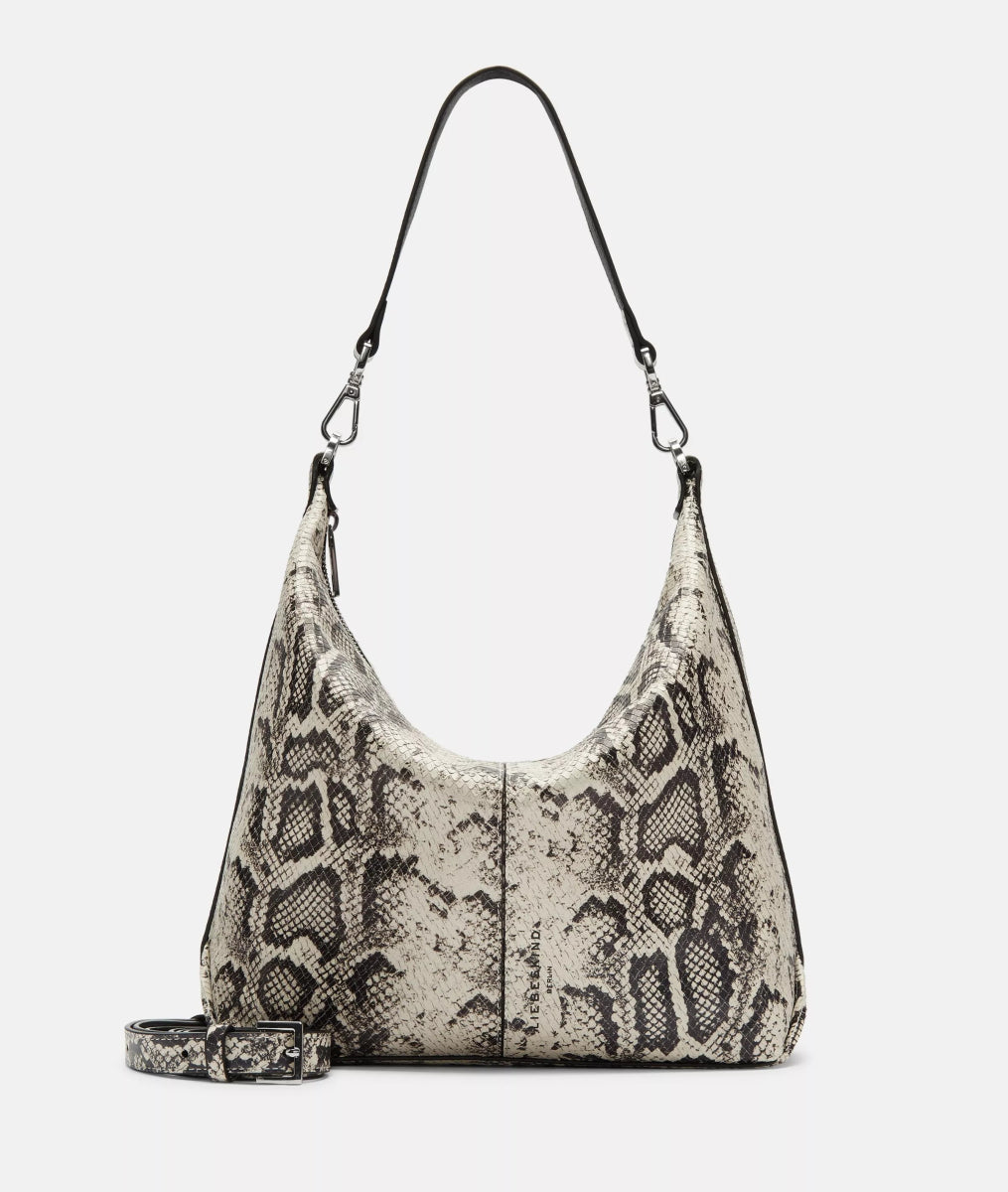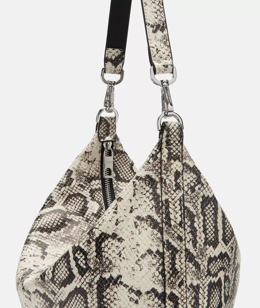 The Paris Hobo M comes in a compact size and characteristic pouch bag shape made from cowhide leather in a snake look with a two-tone effect. The spacious main compartment with zipper offers enough space for all your essentials. The wide, adjustable carrying handle is striking and adds a sporty touch. With its minimalist design, the Paris Hobo is the ideal companion for relaxed everyday looks.