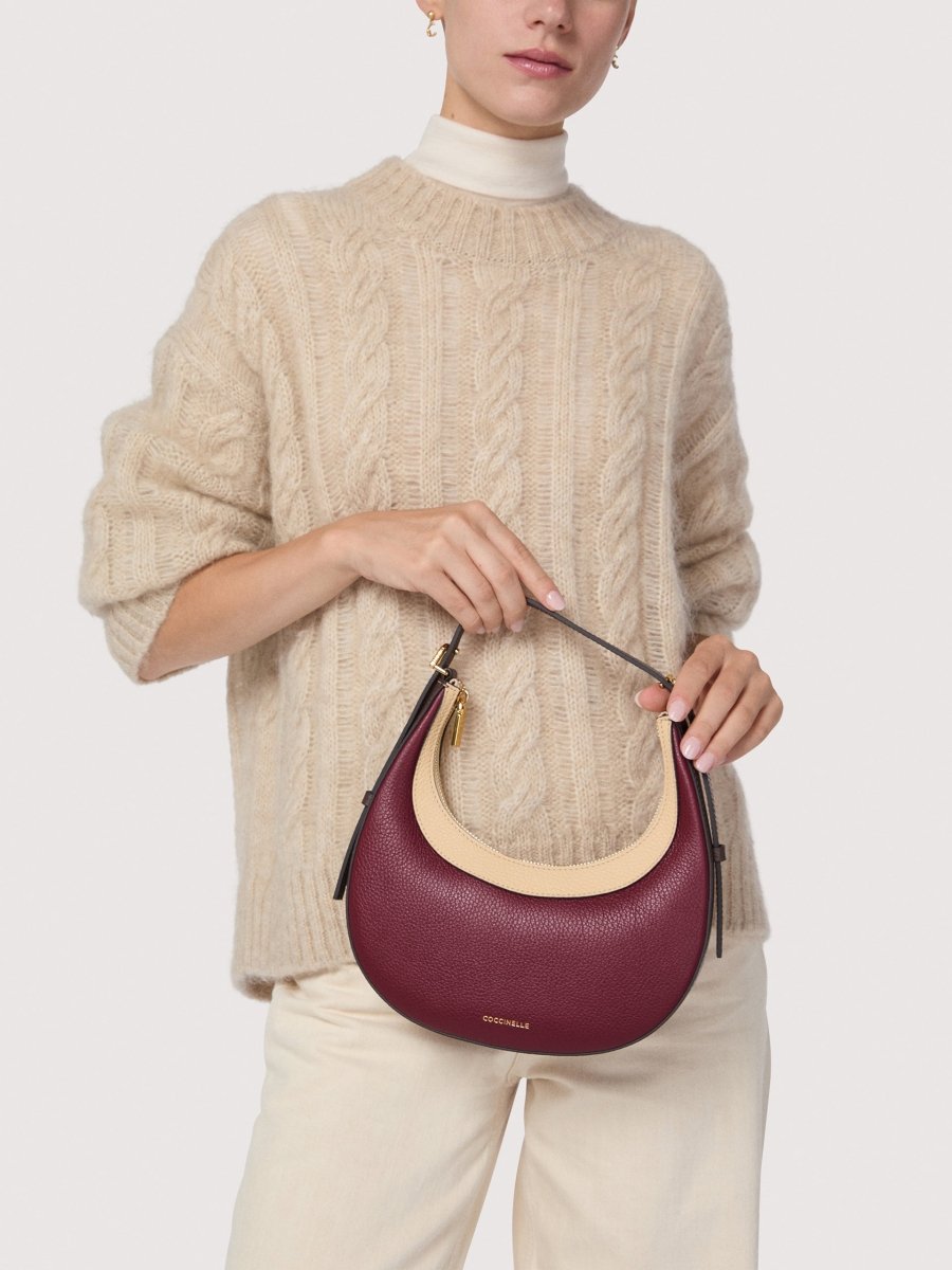 Coccinelle Whisper is a minibag with a minimalist design but characterised by a rounded silhouette. The adjustable leather shoulder strap and plectrum detailing make it sophisticated and refined, and the ideal ally to wear on any occasion. This model is made with leather processed using specialised machines and then tumbled to maintain its softness. This is a very robust, easy to clean leather, making it ideal for everyday use.