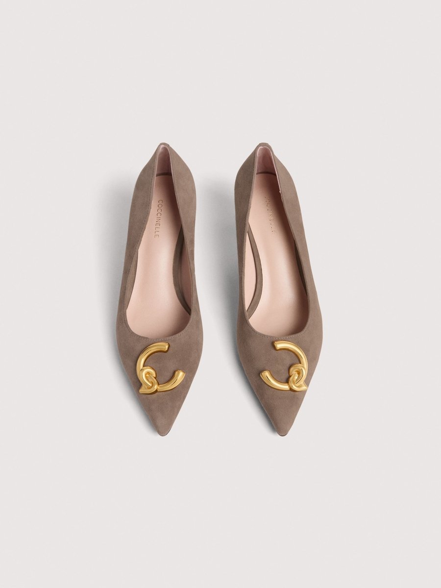 These pumps from the Coccinelle C-Me line are enhanced by the logo reimagined with the C of Coccinelle, which knots around and embraces the plectrum, an iconic element of the brand. A sophisticated and feminine line, perfect for making any occasion special. Complete your look without sacrificing a Coccinelle detail. This model is made of a suede-effect material that is soft and velvety to the touch.