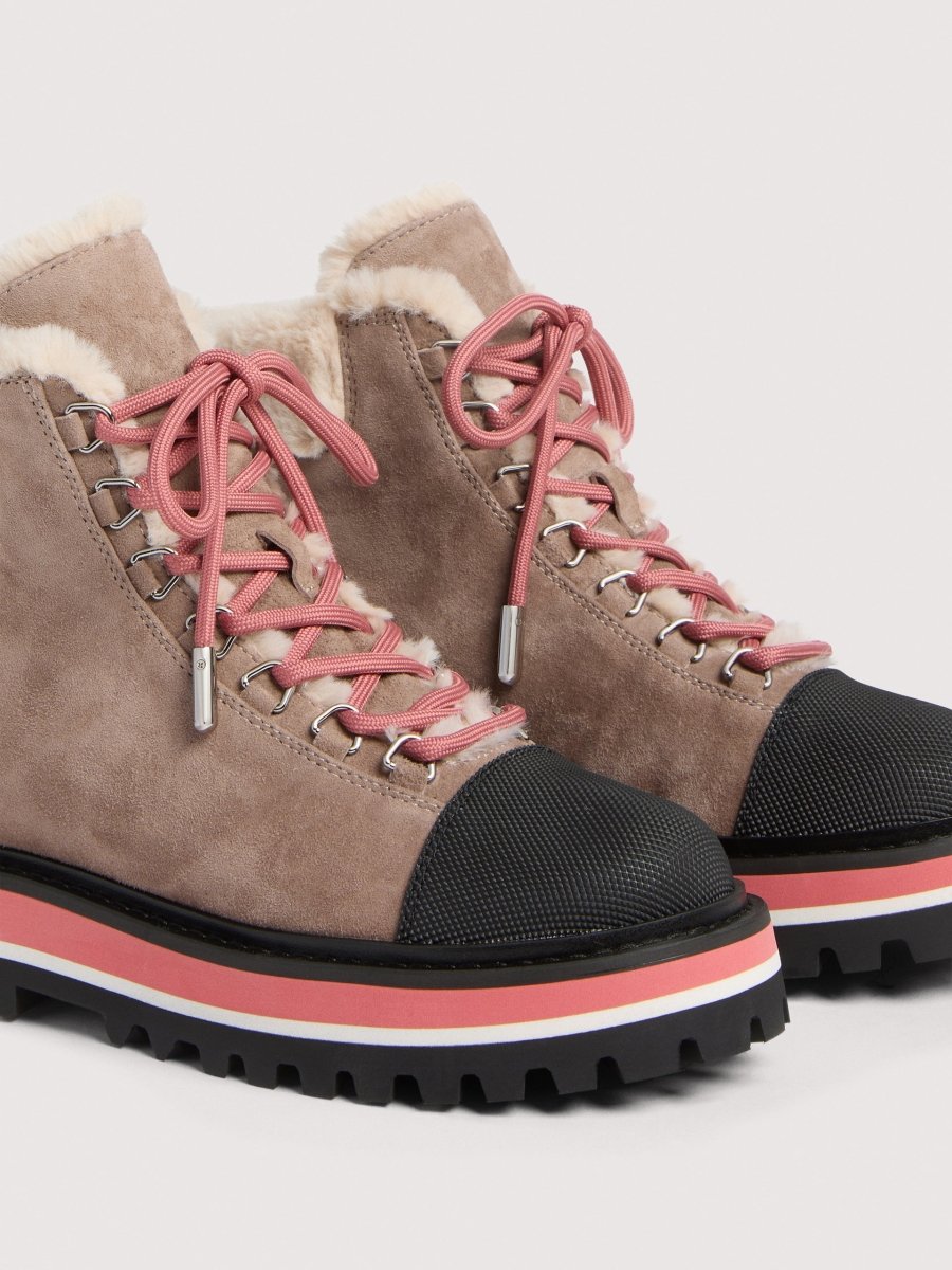 Don't forget to slip into the boots from the Coccinelle Nora line on colder days. With their feminine yet contemporary feel, they feature a cosy synthetic fur lining and unique plectrum-shaped eyelets that add a distinctive touch. Complete your look without sacrificing a Coccinelle detail. This model is made of a suede-effect material that is soft and velvety to the touch.