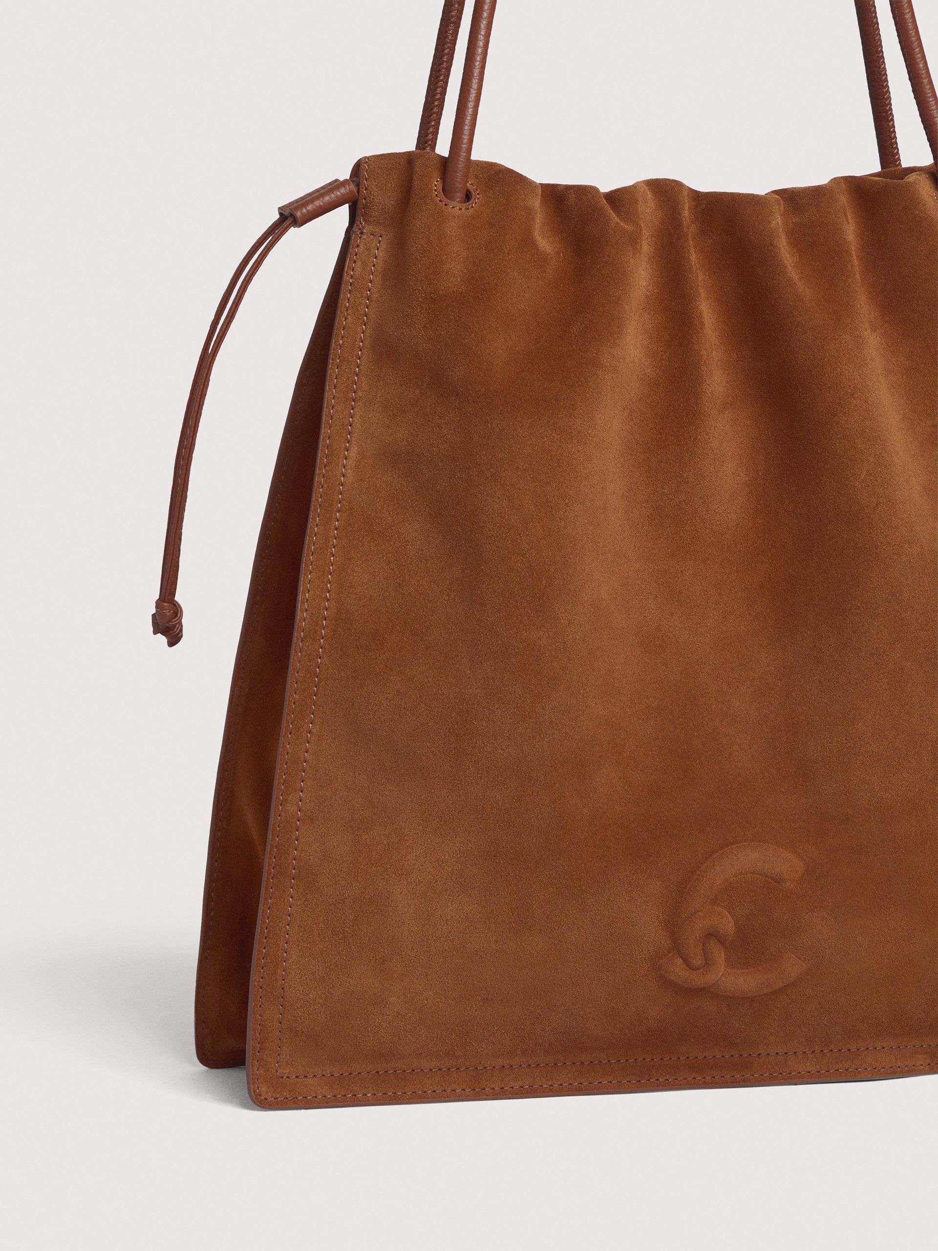 Made from suede leather, the Coccinelle Dulse line highlights the elegance of the material with its distinctive soft pleats. A leather drawstring gathers the roomy silhouette of these bags, blending spaciousness with an elegant and romantic charm. The line is characterised by the new C-Me logo, created using a unique embossed technique on the leather. This model is made of an opaque material that is soft and velvety to the touch. Our suede undergoes an anti-fading treatment that guarantees a reduction in natural colour loss. This is a delicate material. A soft brush is recommended for cleaning.