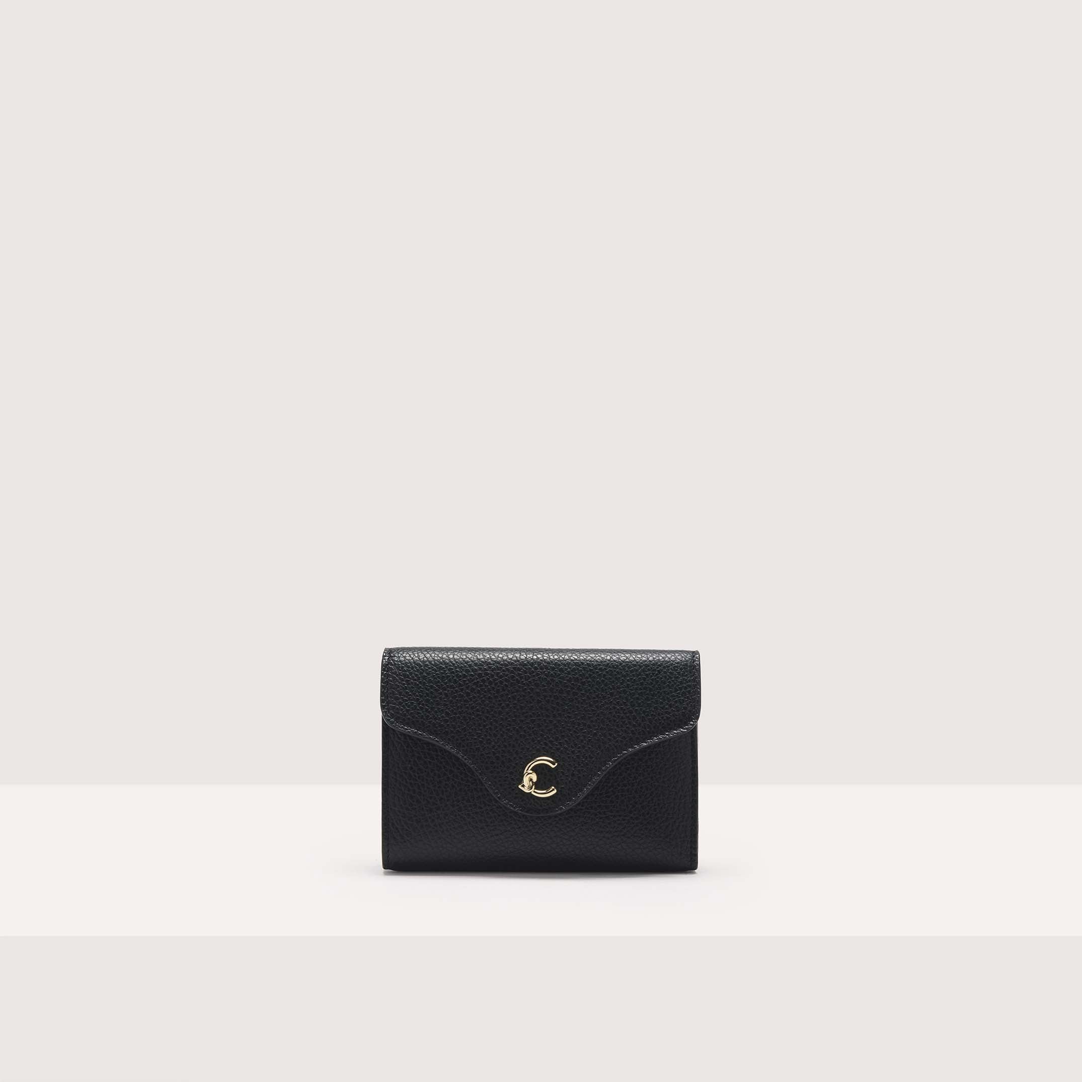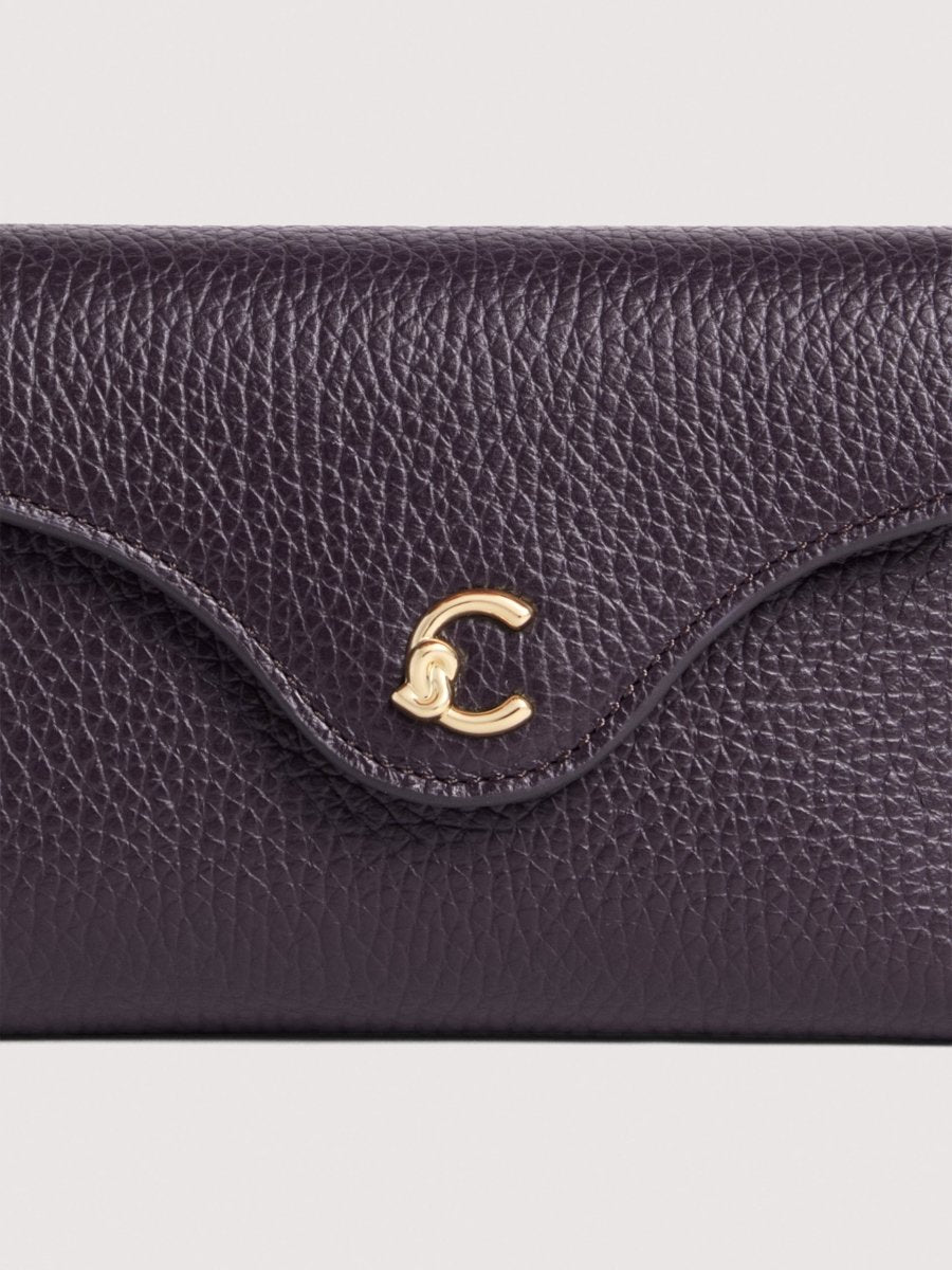 This wallet with a flap from the C-Me line is enhanced by the logo reimagined with the C of Coccinelle, which knots around and embraces the plectrum, an iconic element of the brand. Its space is well organised for storing your essentials neatly and carefully. This model is made with leather processed using specialised machines and then tumbled to maintain its softness. This is a very robust, easy to clean leather, making it ideal for everyday use.