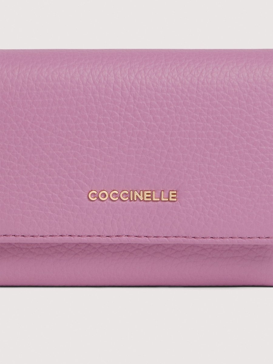 This wallet with a flap from the Metallic line is embellished with the Coccinelle logo in metal. Its space is well organised to tote all your necessary items neatly and carefully. This model is made with leather processed using specialised machines and then tumbled to maintain its softness. This is a very robust, easy to clean leather, making it ideal for everyday use. RFID protection.