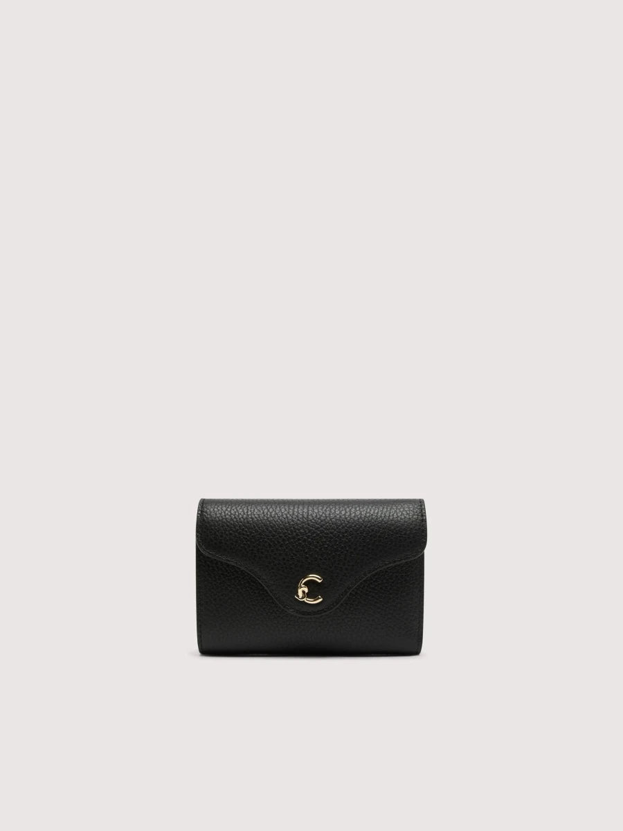 This wallet with a flap from the C-Me line is enhanced by the logo reimagined with the C of Coccinelle, which knots around and embraces the plectrum, an iconic element of the brand. Its space is well organised for storing your essentials neatly and carefully. This model is made with leather processed using specialised machines and then tumbled to maintain its softness. This is a very robust, easy to clean leather, making it ideal for everyday use. RFID protection.