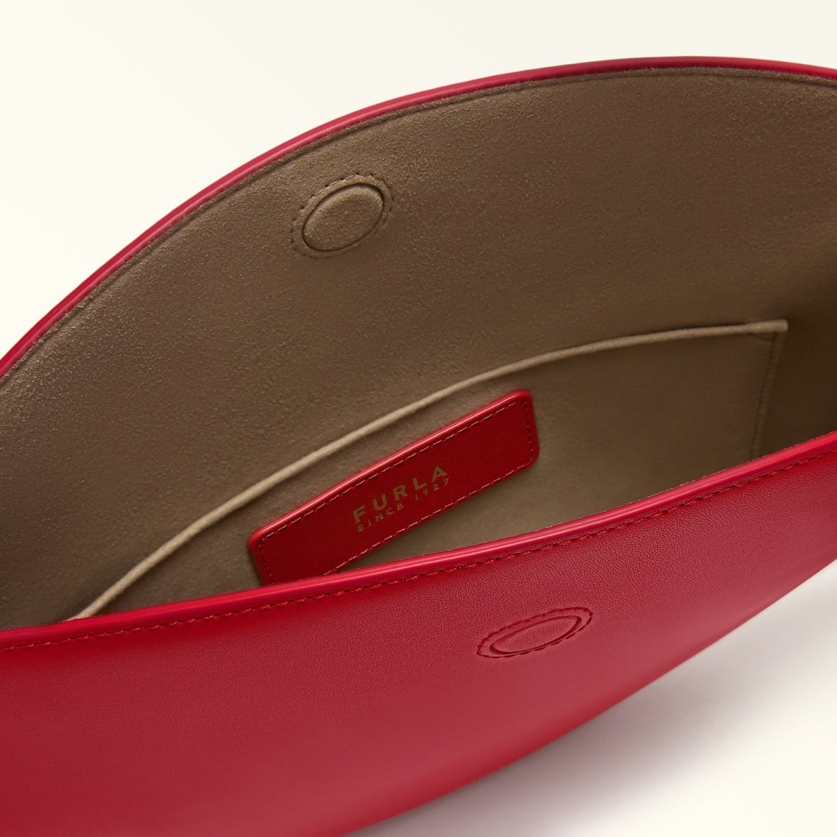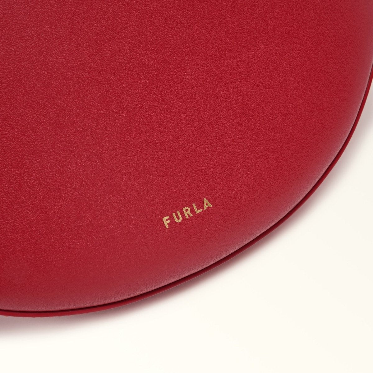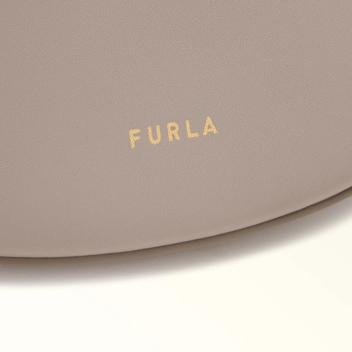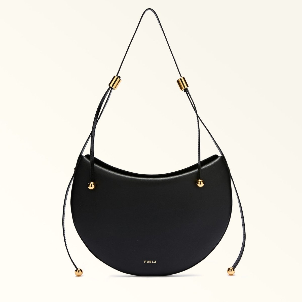 The Furla Moonstone shoulder bag has a contemporary saddle silhouette, its calfskin leather design elevated by clean and rounded lines. An adjustable fixed shoulder strap offers different styling options, while cylindrical hardware and two Sfera elements add a touch of elegant originality.