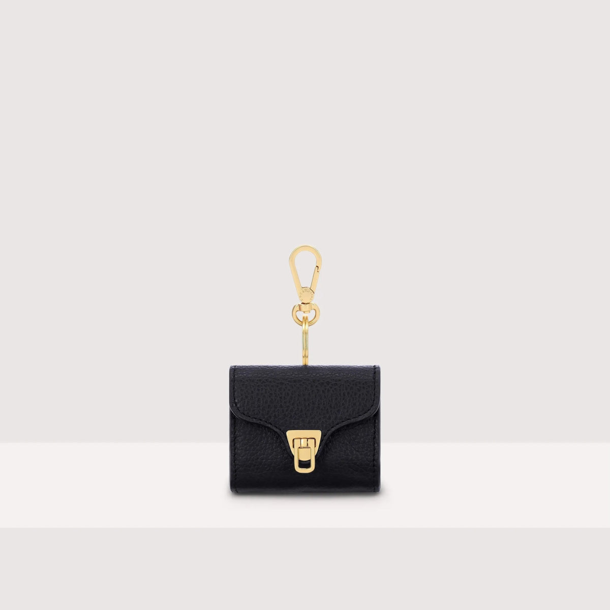 Airpods case with carabiner hook, also perfect for use as a charm to embellish your bag. Accessory that expands the range in the Coccinelle Beat line featuring the iconic metal plectrum-shaped clasp. This model is made with leather processed using specialised machines and then tumbled to maintain its softness. This is a very robust, easy to clean leather, making it ideal for everyday use.