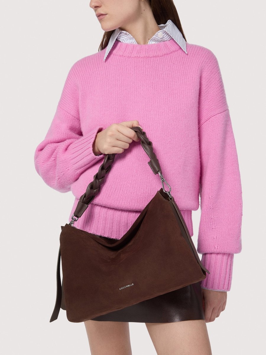 Boheme is a line made of soft leather and features a plaited handle that makes it feminine and contemporary. Functional and spacious, this is the ideal bag for the most dynamic of women. This model is made of an opaque material that is soft and velvety to the touch. Our suede undergoes an anti-fading treatment that guarantees a reduction in natural colour loss. This is a delicate material. A soft brush is recommended for cleaning.