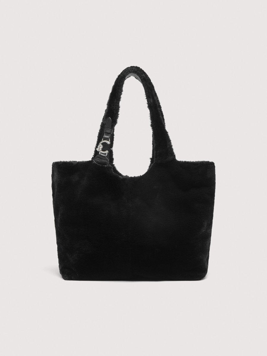 Coccinelle C-Easy is a tote bag featuring sinuous curves that highlight the beauty of the leather. Functionality is expressed by the capacity and the inner pouch, but the core of the design lies in the fastening, which can be done either centrally via a magnet, leaving the sides open, or by folding the sides through the lace and button stud closure. There is no lack of a metallic element in the handle with the new C-Me logo, which brightens up this bag with its extremely versatile soul. This model is made from single-colour synthetic fur with a smooth appearance and an extremely soft feel.