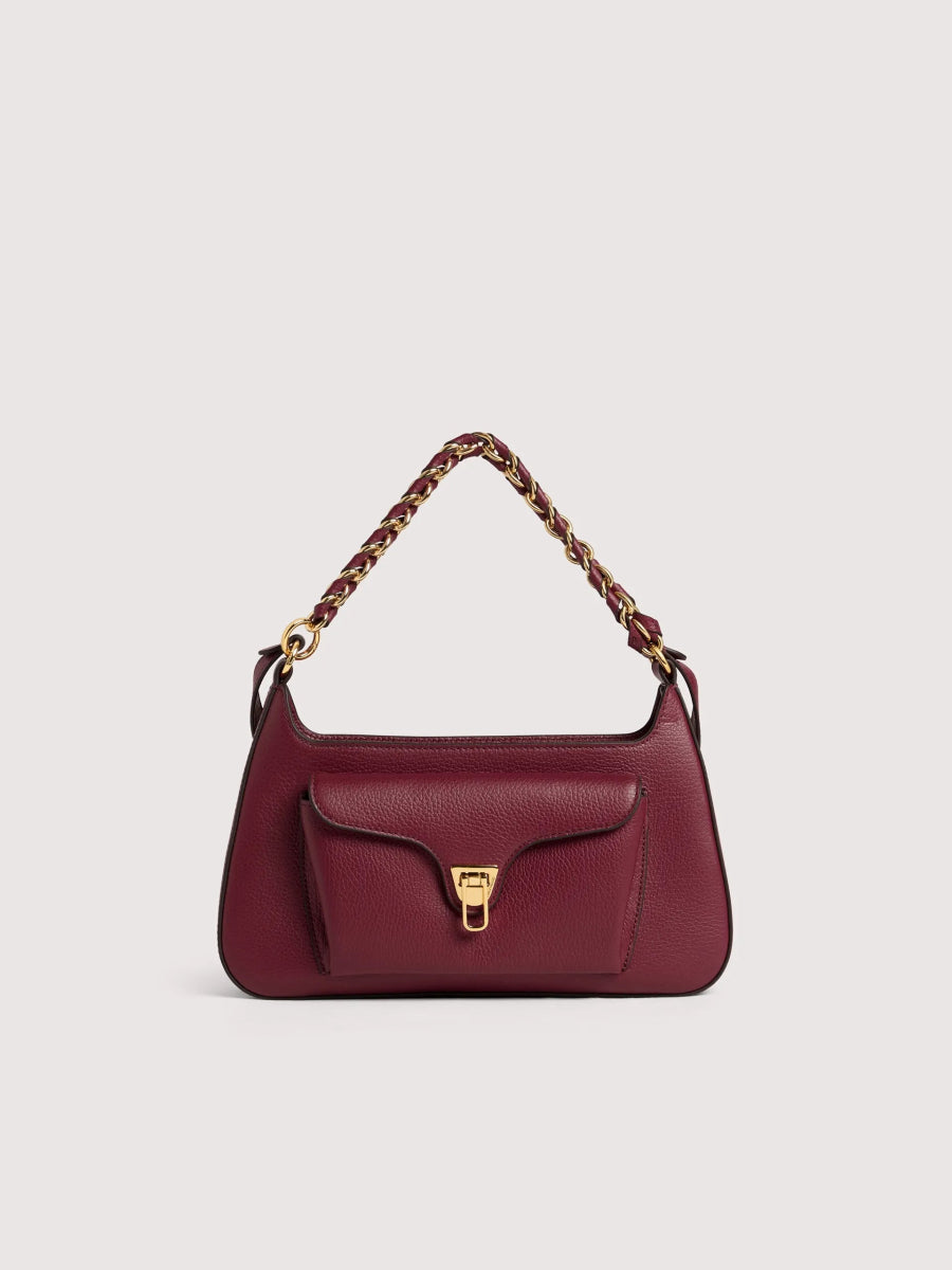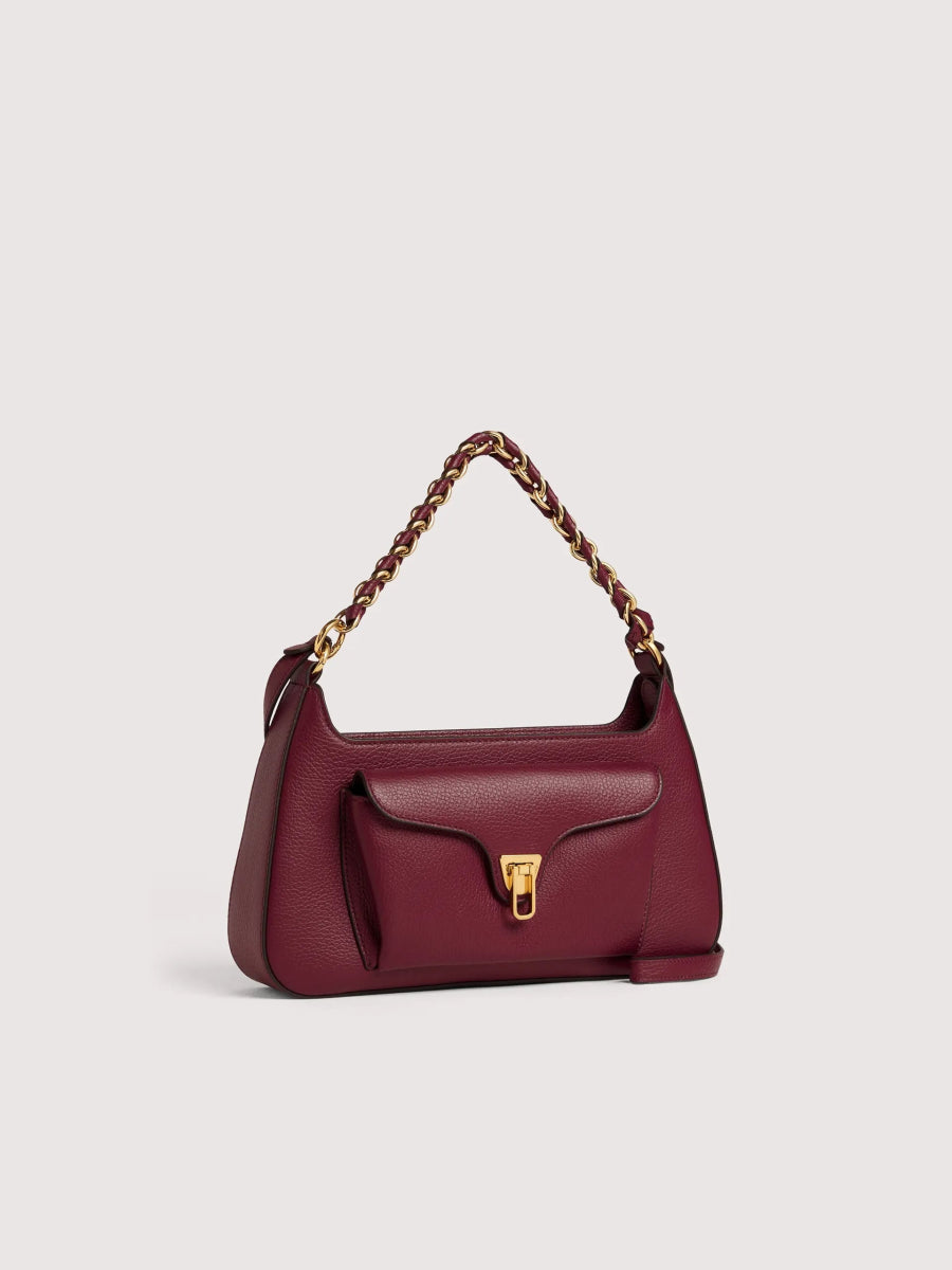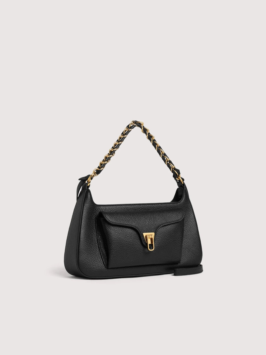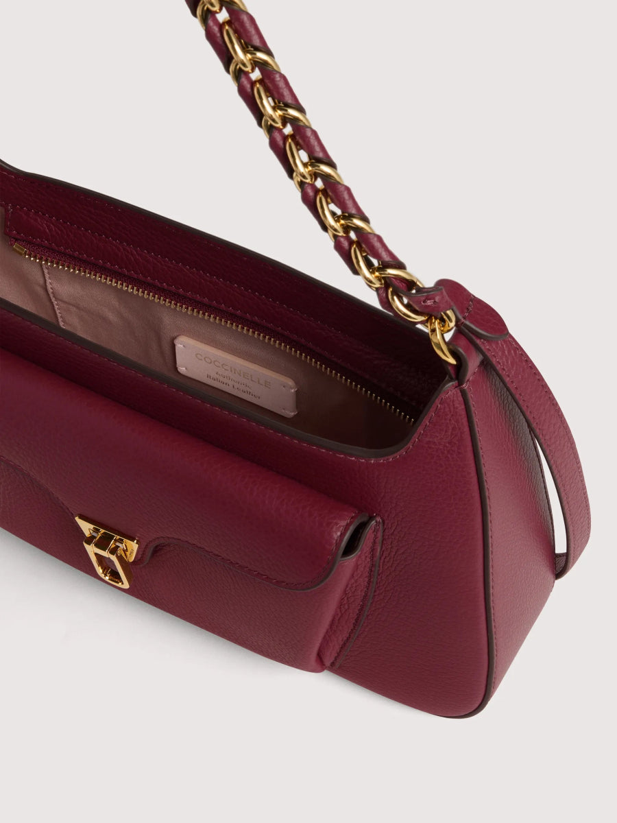 Coccinelle Beat is one of the brand’s iconic lines: the distinctive flap closure with plectrum is the symbol of Coccinelle’s identity, reimagined for this collection with elegant, modern functionality. The shoulder bag is enhanced by a leather and chain handle, a perfect mix of structure and softness, practicality and contemporary design. This model is made with leather processed using specialised machines and then tumbled to maintain its softness. This is a very robust, easy to clean leather, making it ideal for everyday use.