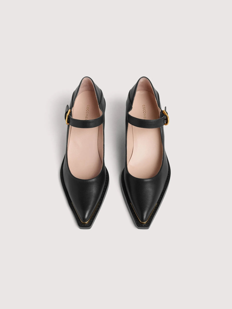Feminine, recognisable silhouette thanks to the strap with plectrum buckle detail. The Coccinelle Connie line features a pair of pumps with a bold, contemporary feel, highlighted by the metal detail on the toe. Complete your look without sacrificing a Coccinelle detail. This model is made with smooth leather, soft to the touch.