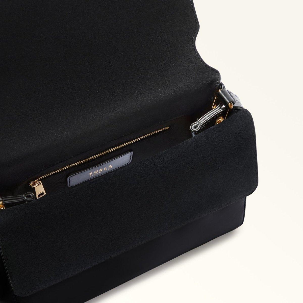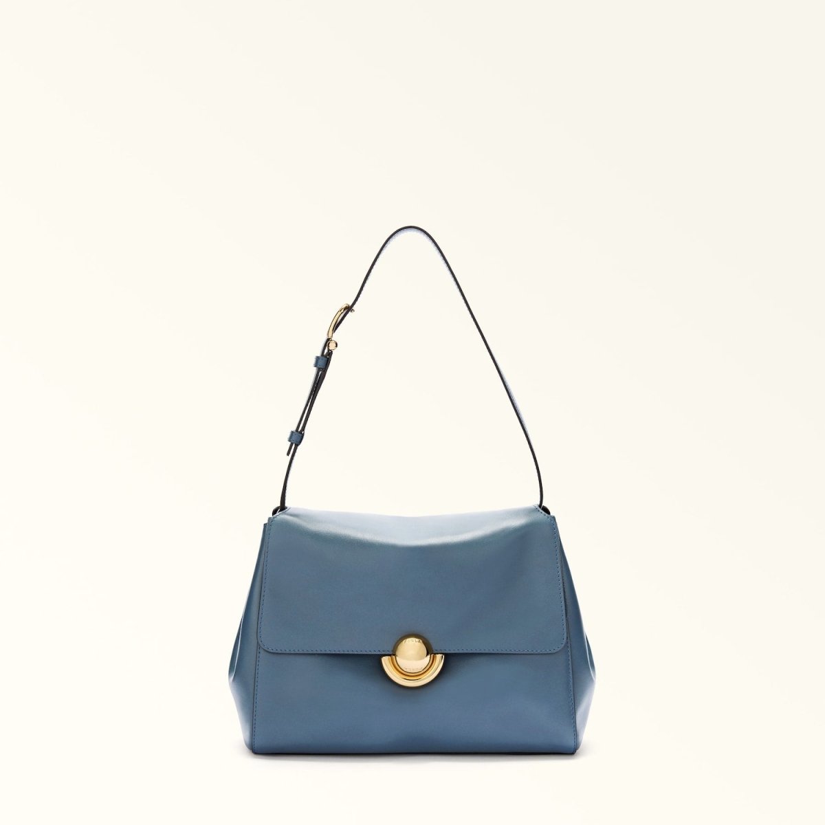 Soft and unstructured, the Furla Domus bag is crafted from luxurious calfskin leather. Its elegant flap closure is embellished with suede details and round Sfera hardware, elevating the design with a distinctive twist. Complete with a long adjustable handle, its compact silhouette sits on your shoulder in comfortable style.