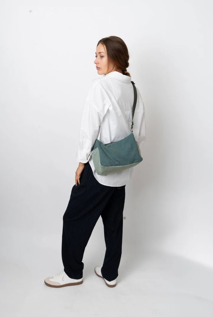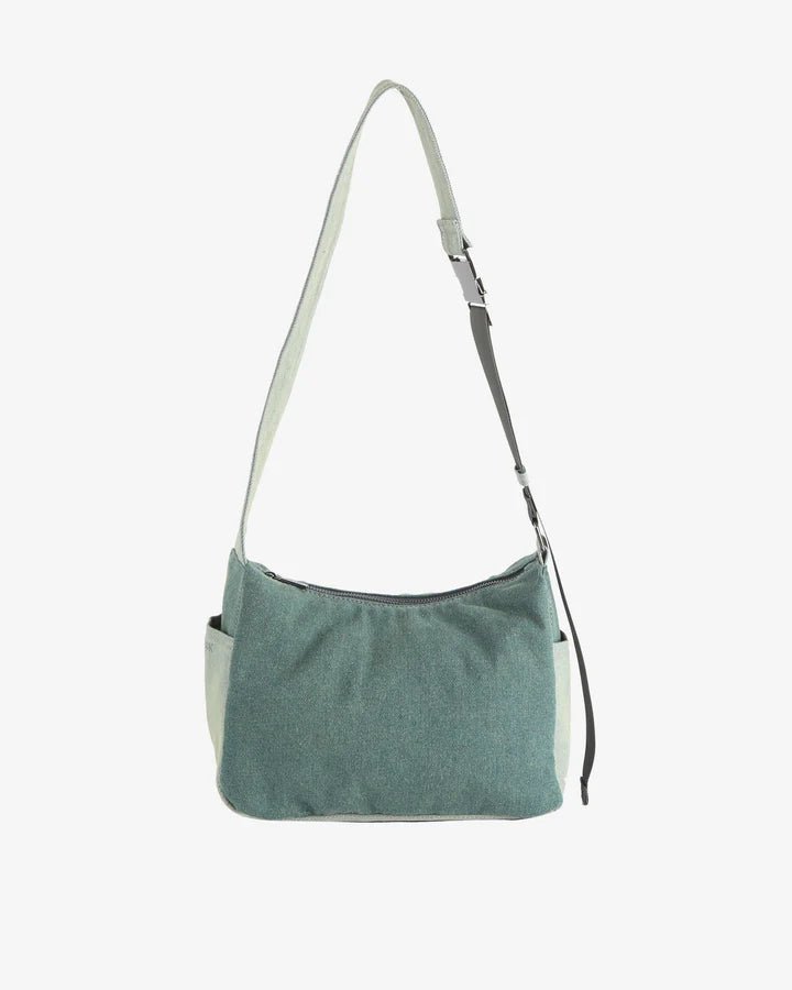 Crossbody bag with zip closure, adjustable strap. One main compartment and one inner zip pocket.