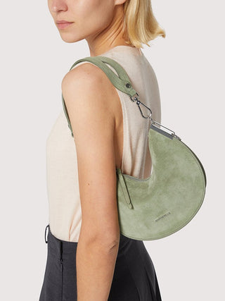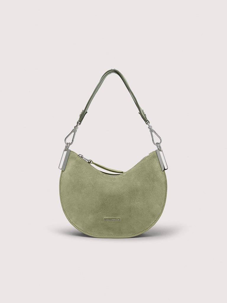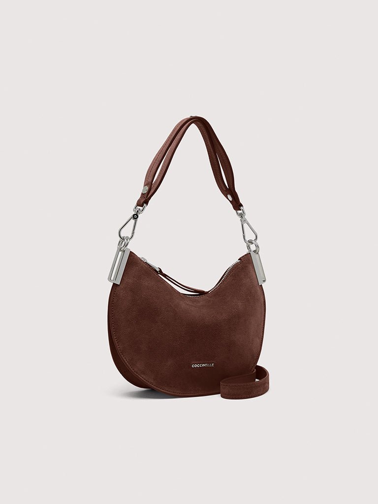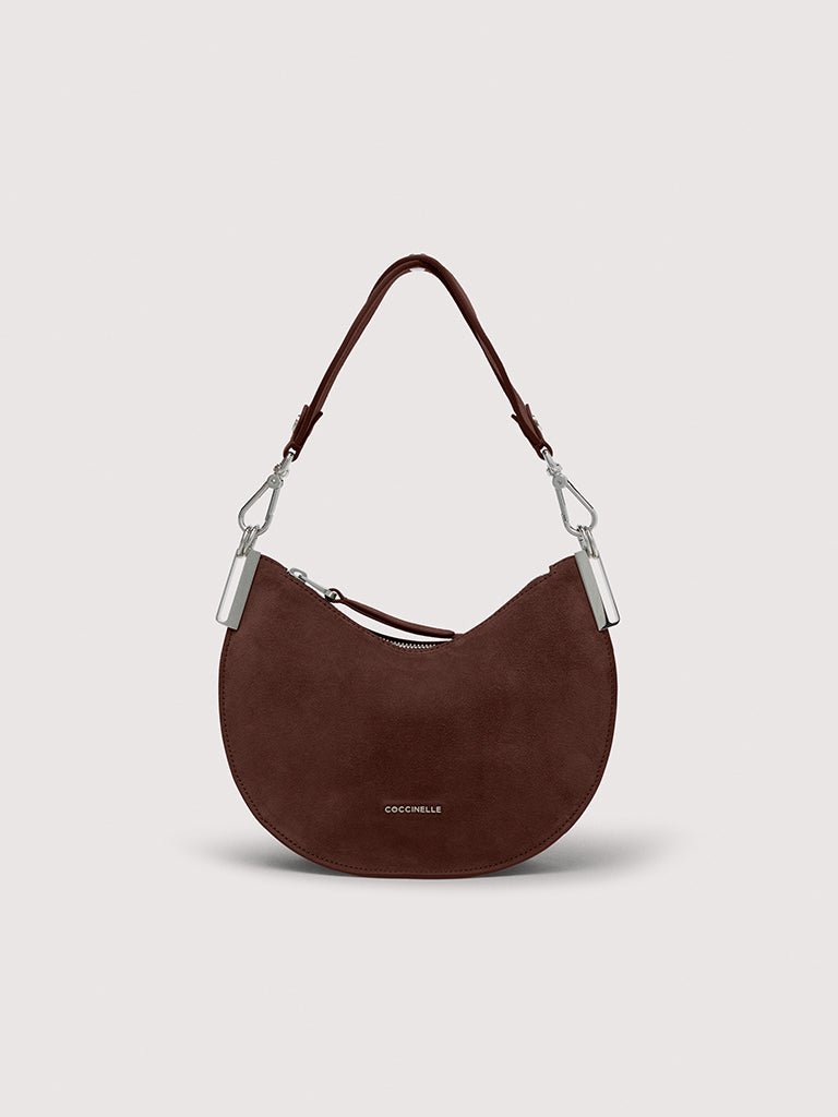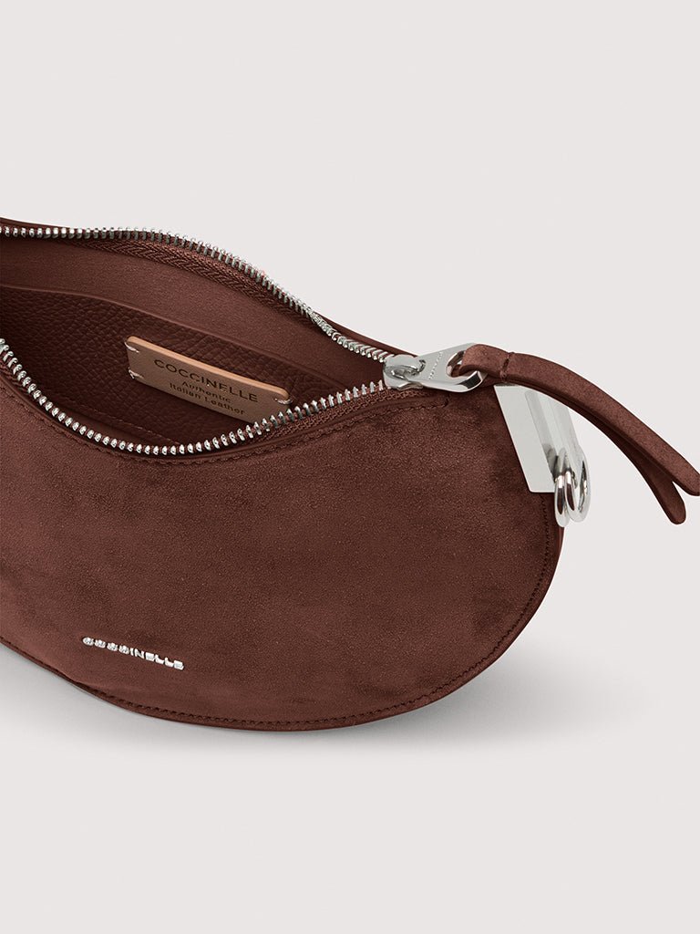 The roundness of its silhouette, also reflected in its name, is the hallmark of the Coccinelle Sunup line. The handle is the line’s distinguishing element, modelled on the same feminine curves that draw a sinuous weave, giving it a touch of originality. The two-sided leather enhances the softness and lightness of the bag, due also to the unlined interior, adding an original twist thanks to the play of contrasting colours. This model is made of an opaque material that is soft and velvety to the touch. Our suede undergoes an anti-fading treatment that guarantees a reduction in natural colour loss. This is a delicate material. A soft brush is recommended for cleaning.