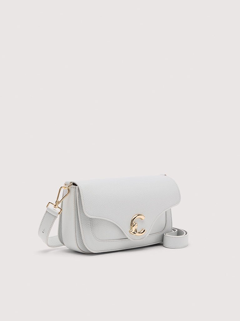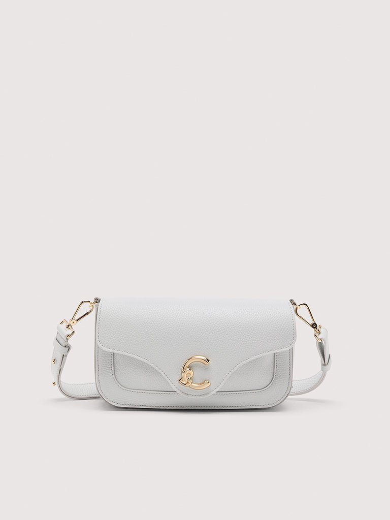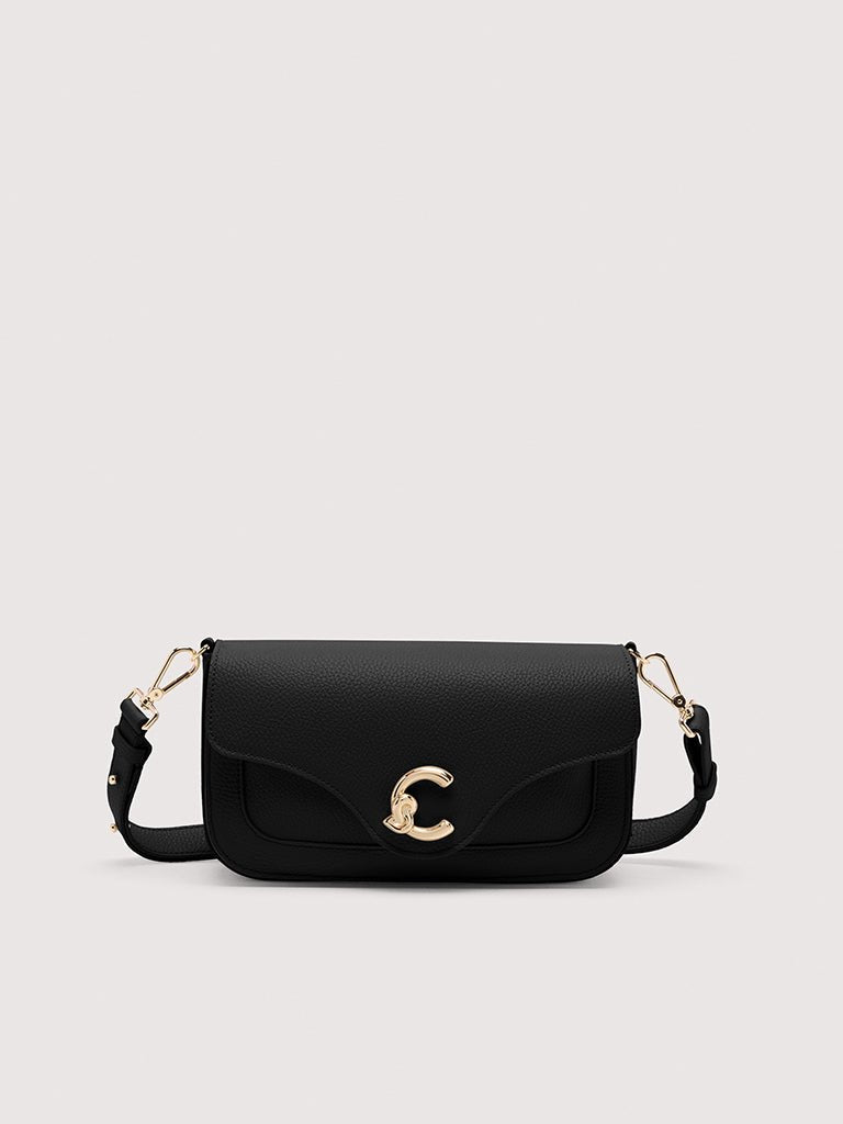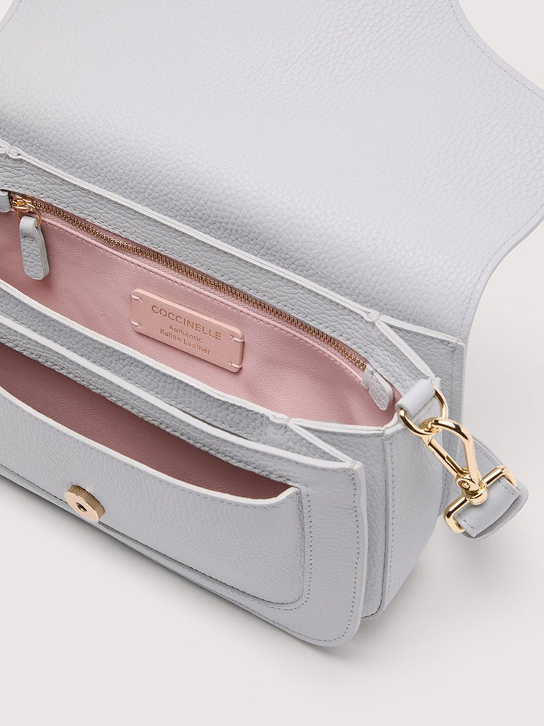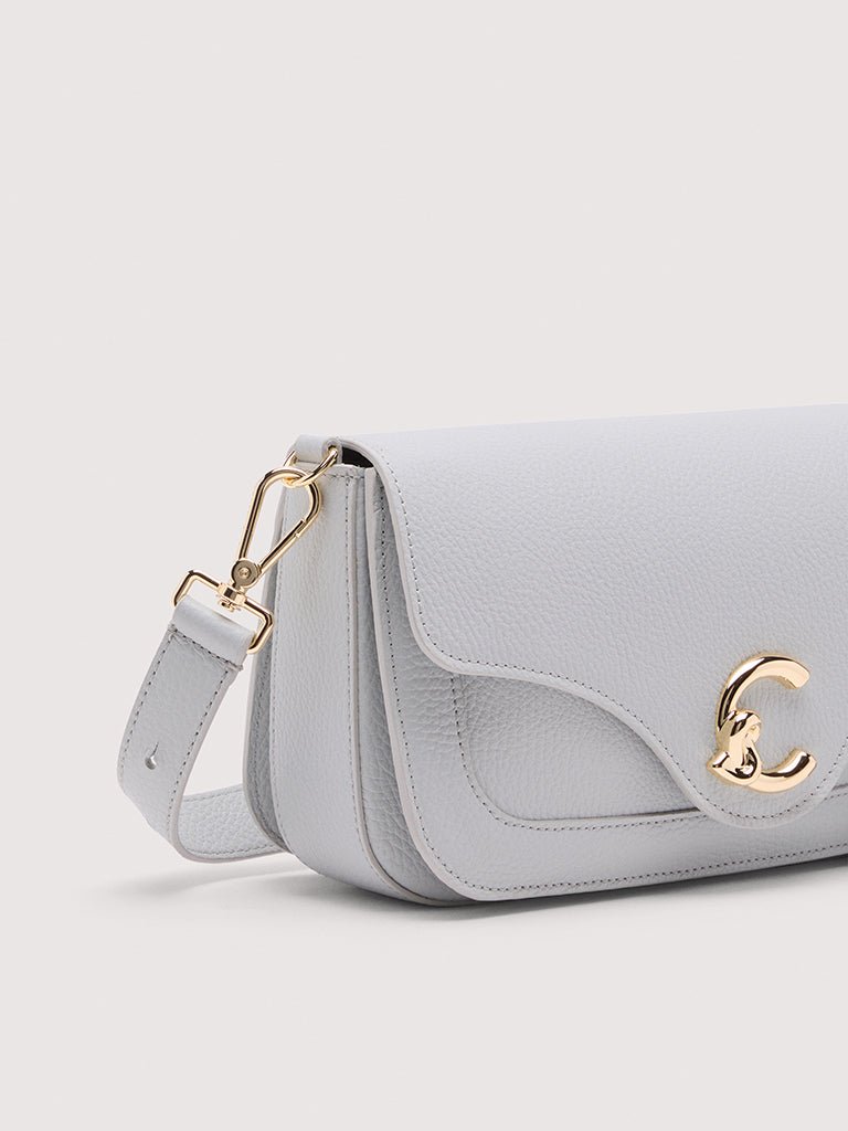 A new signature joins the brand: Coccinelle C-Me. The logo is reimagined with the C from Coccinelle, which knots around and embraces the plectrum - an iconic element of the brand - symbolising the intertwining of a woman’s life between past and present. The geometric lines and elegant curves elevate the design, while the gusseted construction brings a blend of functionality and understated elegance to this bag, intended to be the essential companion for the Coccinelle woman throughout her day. This model is made with leather processed using specialised machines and then tumbled to maintain its softness. This is a very robust, easy to clean leather, making it ideal for everyday use.