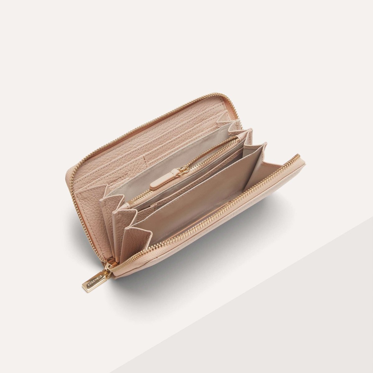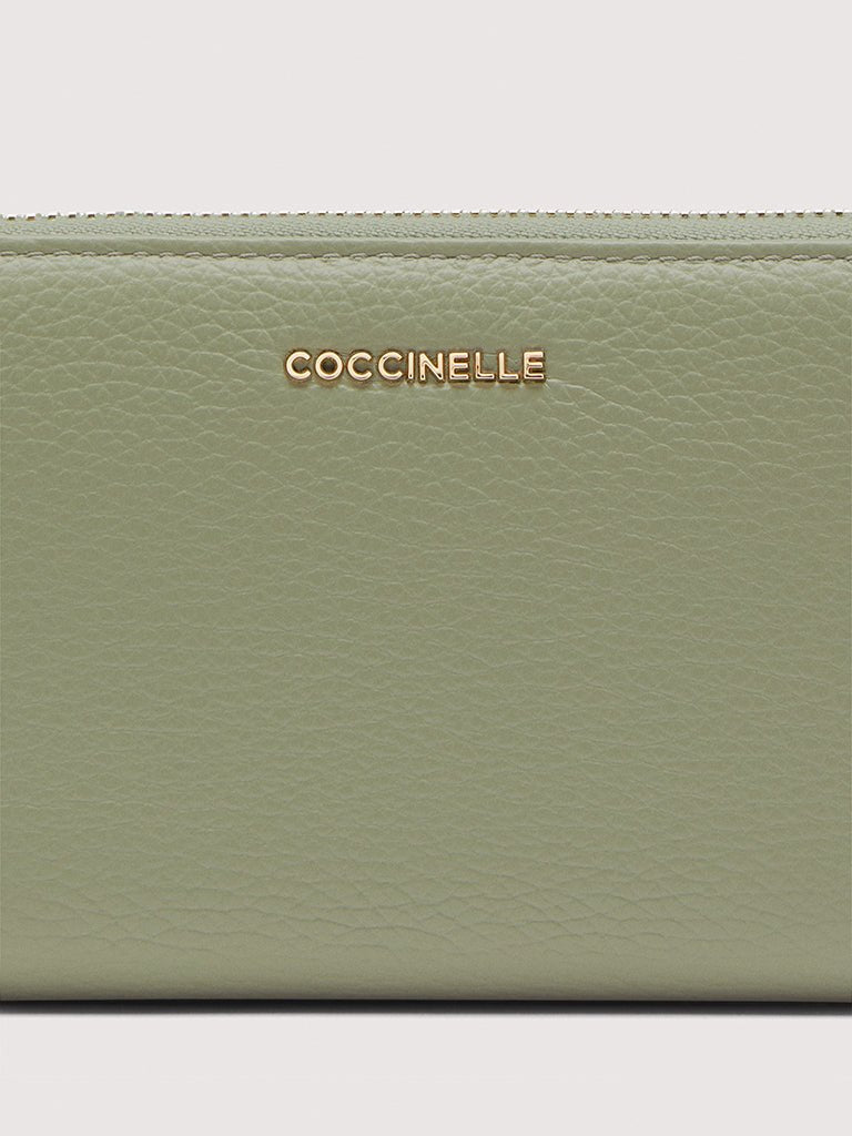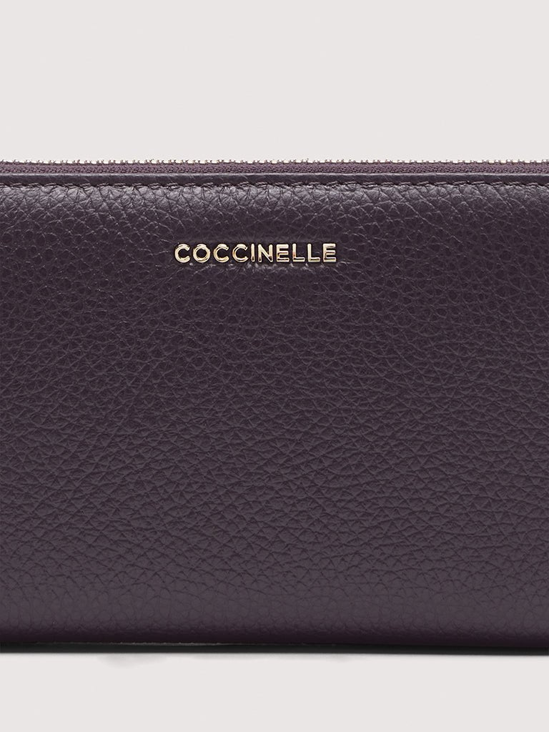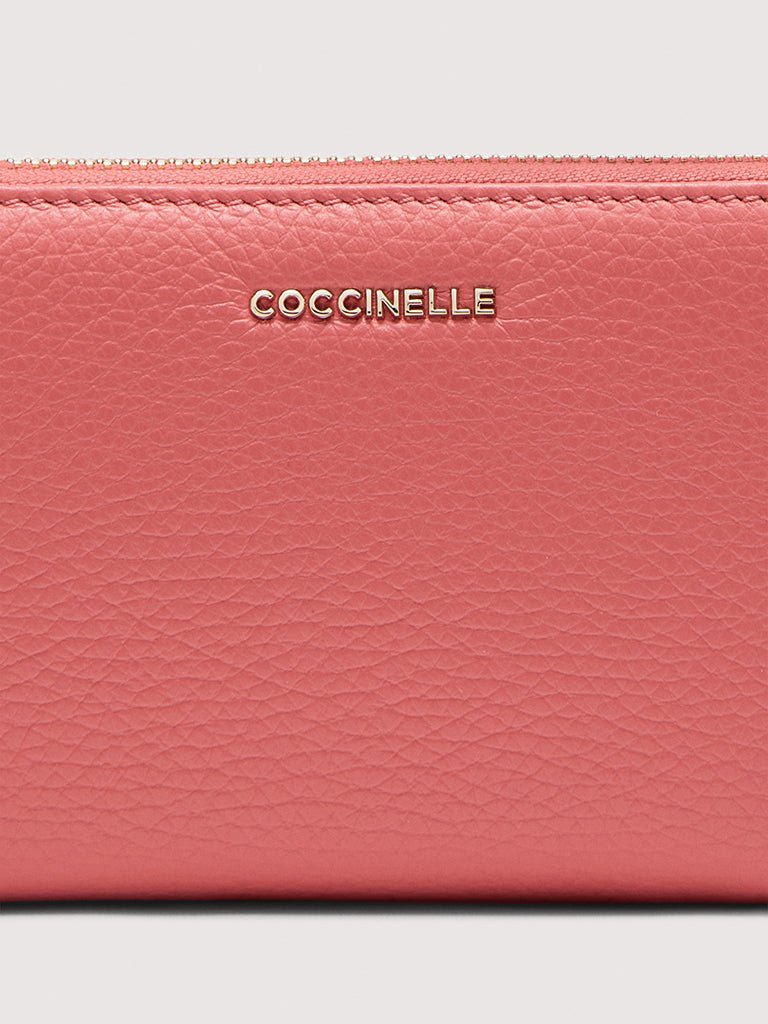 This spacious Metallic zipped purse features the metal Coccinelle logo. The extremely functional use of space has been designed to keep your essentials tidy and secure.