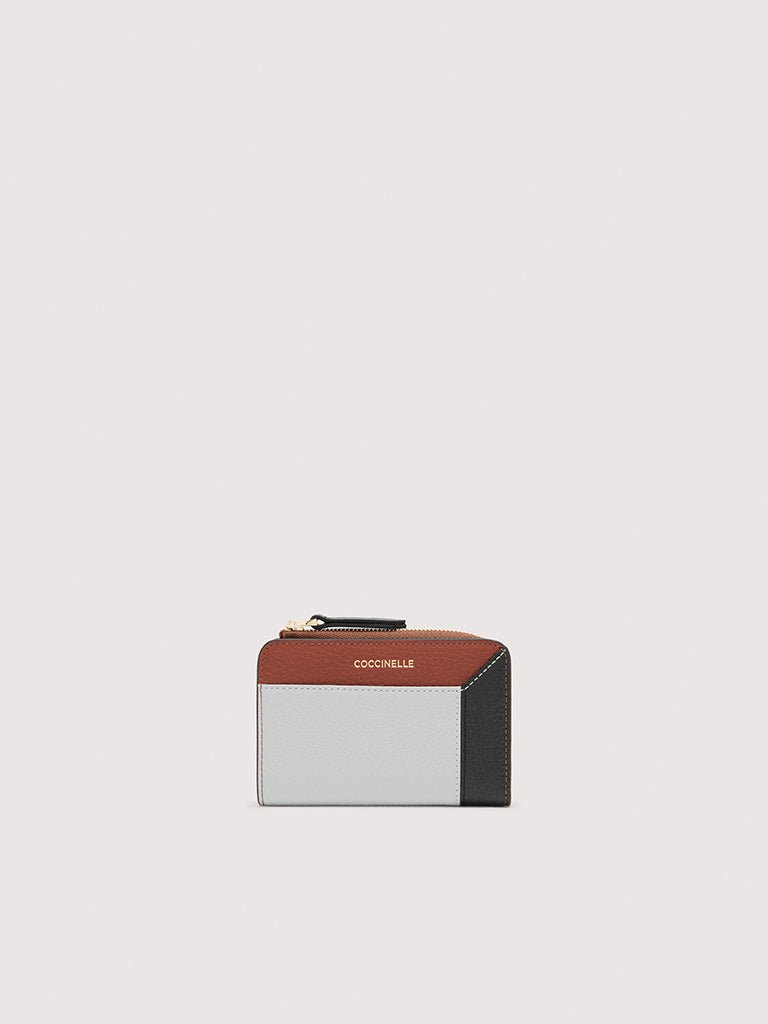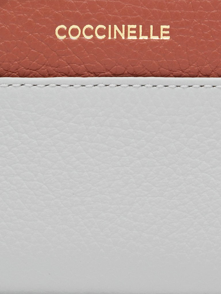 This wallet with a side zip for a coin compartment from the Coccinelle Loreen line is elevated by a tricolour design and the Coccinelle logo. Its space is well organised for storing your essentials neatly and carefully. This model is made with leather processed using specialised machines and then tumbled to maintain its softness. This is a very robust, easy to clean leather, making it ideal for everyday use. RFID protection.