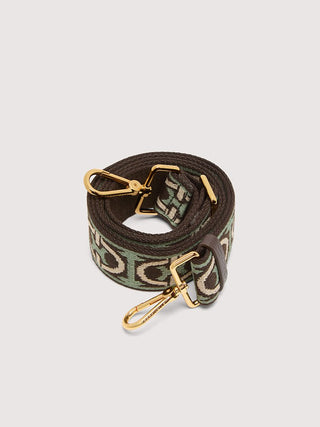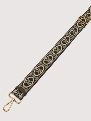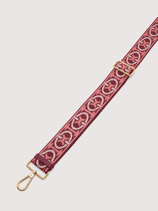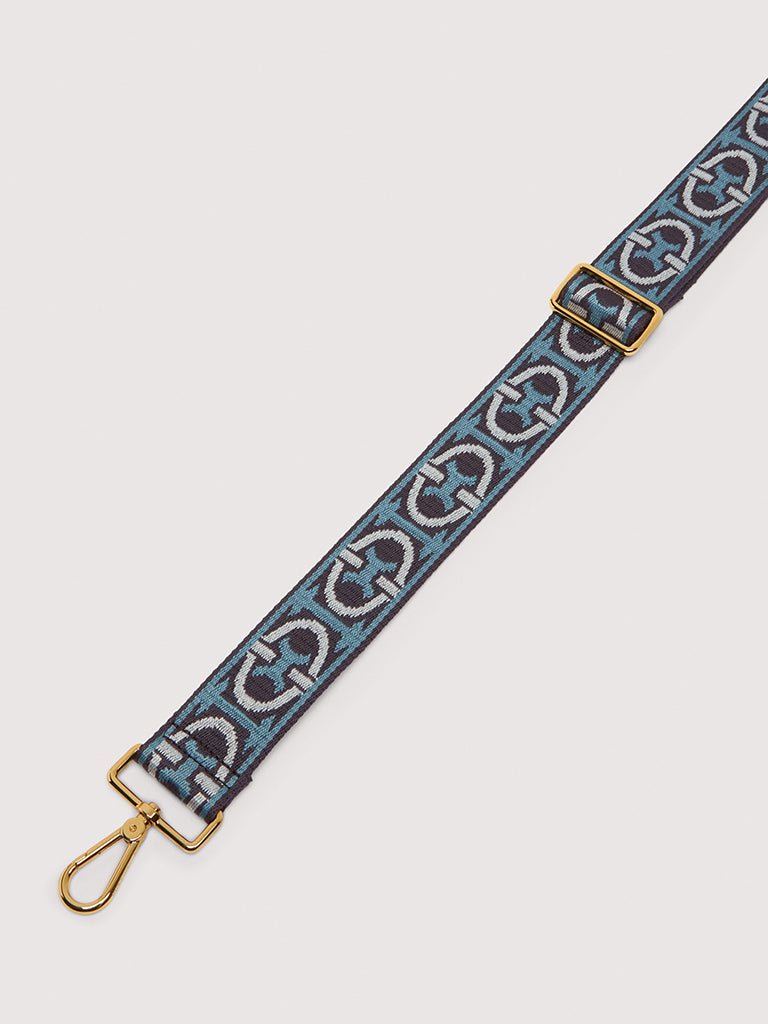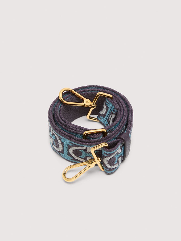 Jacquard fabric shoulder strap with Monogram Coccinelle pattern. Adjustable with sliding ring. Perfect for personalising your bag. This model is made in 100% cotton fabric. The jacquard monogram fabric is made using a special loom capable of carrying out complex designs. Once finished, this fabric is further processed and provided with an anti-fraying solution on the back and anti-drip solution on the visible side. Clean with a white cotton cloth slightly moistened with water and leave to dry.